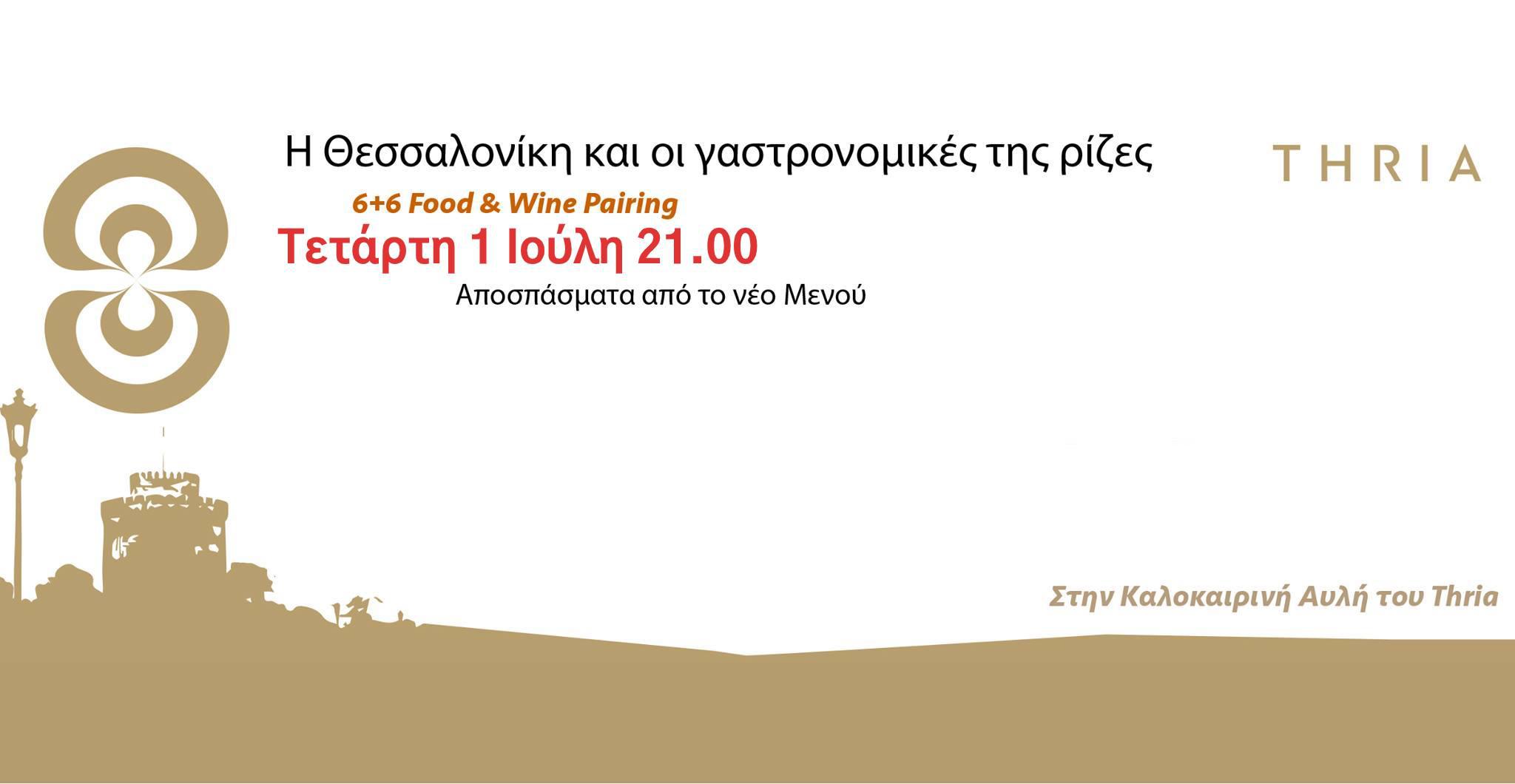 Η ομάδα του εστιατορίου Thria και ο σεφ Δημήτρης Τασιούλας, παρουσιάζουν 6 πιάτα από το νέο menu του thria που αναζητά τις ρίζες της Θεσσαλονικιώτικης κουζίνας και το πως αυτή διαιωνίζεται μέχρι σήμερα. Η βραδιά, περιλαμβάνει 6 διαφορετικά πιάτα που συνοδεύονται από κρασιά 6 διαφορετικών οινοποιείων .