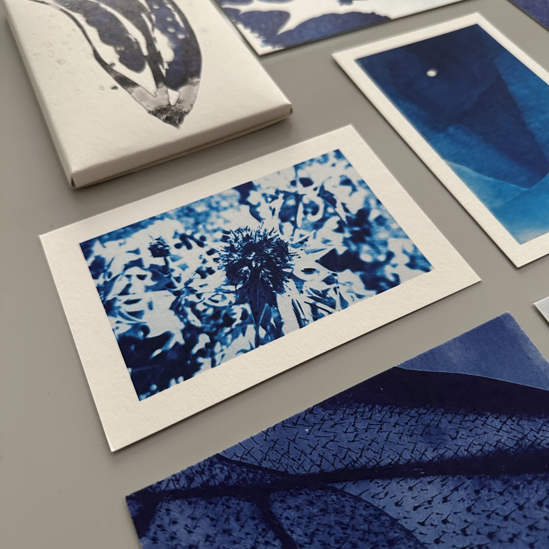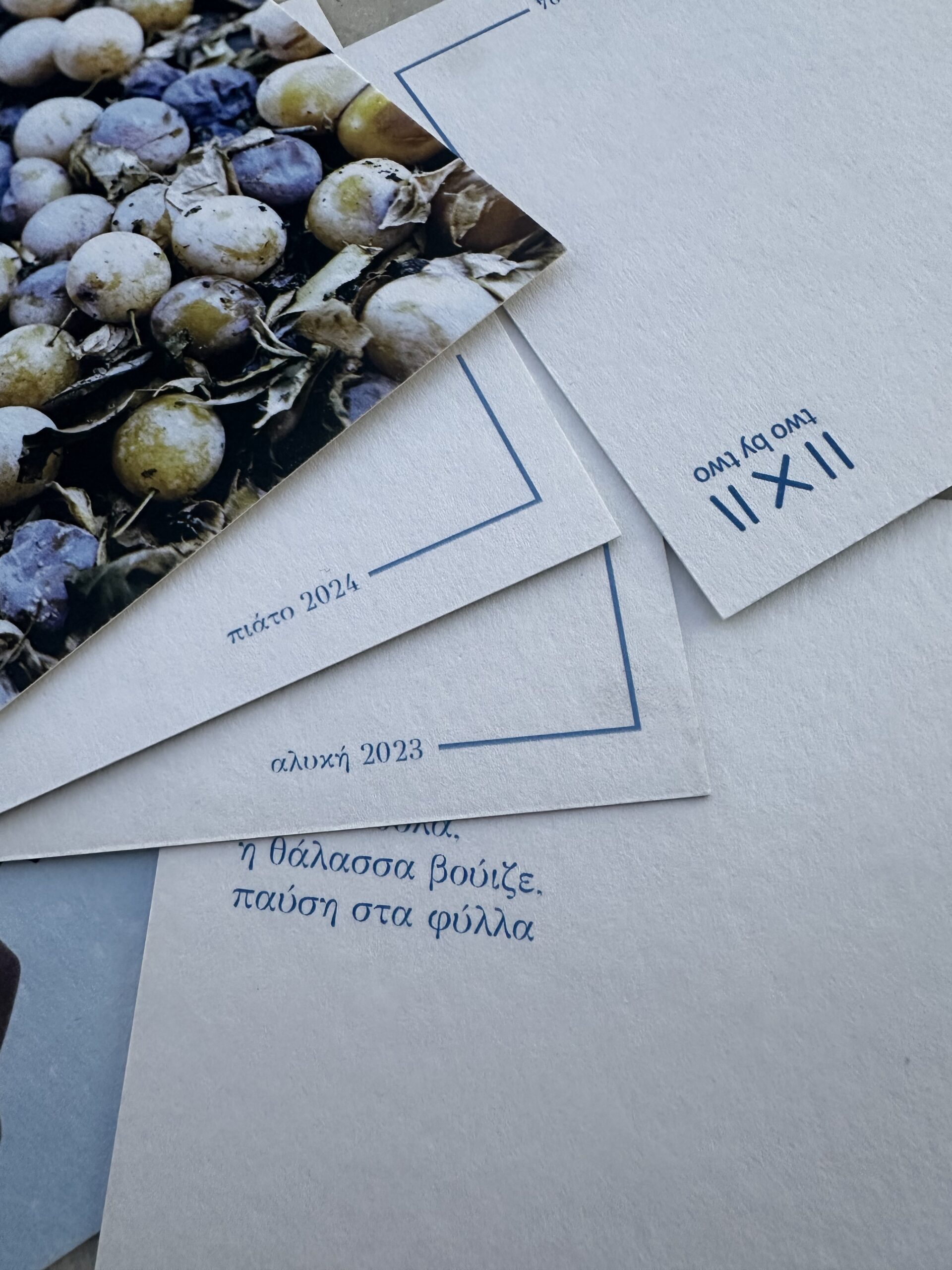 Μια μικρή έκπληξη είναι η εκτύπωση στο ιδιαίτερο χαρτί materica gesso, καθώς και τα μικρά κείμενα πίσω από κάθε κυανοτυπία και τα χαϊκού πίσω από κάθε φωτογραφία, που ολοκληρώνουν την οπτική αφήγηση.