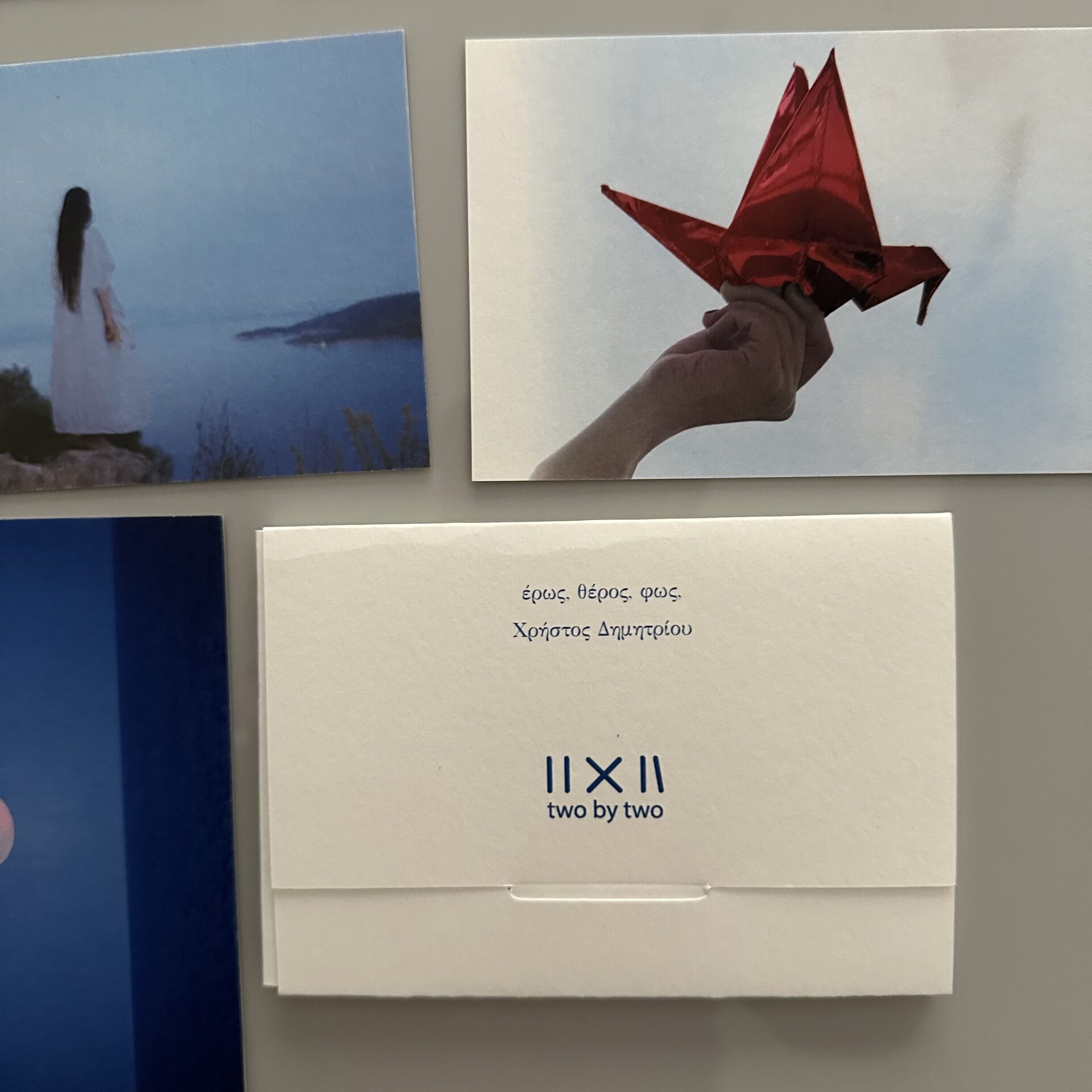 Εμείς, αναμένουμε ήδη το επόμενο project, με φωτογραφία και κυανοτυπία να μπλέκονται σ’ ένα πολύπτυχο, στο φορμάτ του flag book, πάντα από τα δύο επί δύο χεράκια τους!