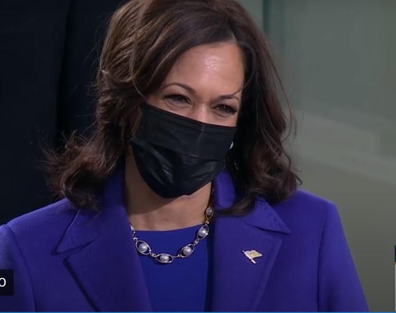 Όσον αφορά την Κάμαλα Χάρις, η νέα αντιπρόεδρος των ΗΠΑ επέλεξε δύο νέους Αφροαμερικανούς σχεδιαστές, τους Κρίστοφερ Τζον Ρότζερς και Σέρτζιο Χάντσον. Η πρώην γερουσιάστρια της Καλιφόρνιας φόρεσε ένα βιολετί σύνολο, που αποτελείτο από ένα μακρύ φόρεμα και ένα ασορτί μαντό.