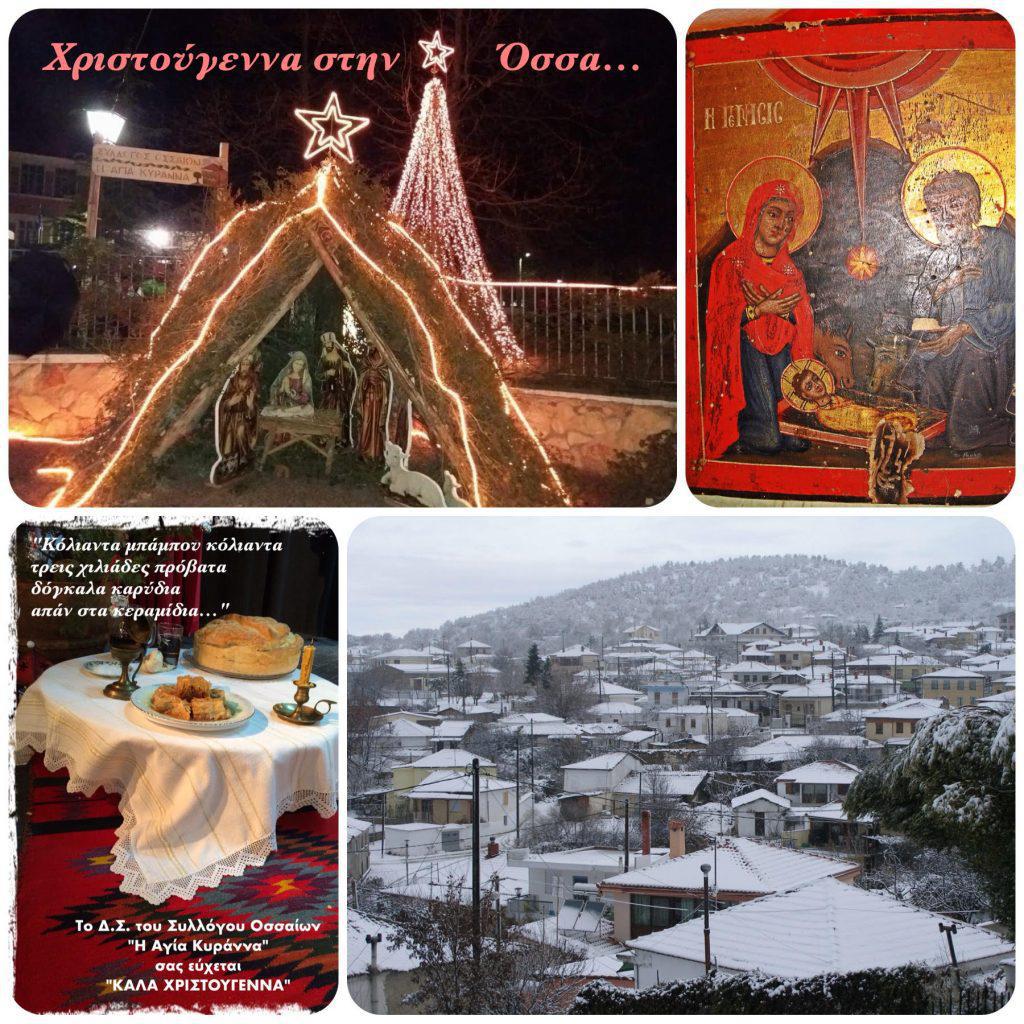 Την παραμονή των Χριστουγέννων στην παλιά Βυσσώκα (σημ. Όσσα) οι «τρανοί» (μεγάλοι) ξυπνούσαν από τα ξημερώματα, γύρω στις 3 το πρωί, φορούσαν τις χοντρές μαύρες μαλλιώτες κάπες τους, έπαιρναν τις «καρλίγκες» (γκλίτσες) τους και γυρνώντας κατά ομάδες από σπίτι σε σπίτι ξεκινούσαν να λένε τα «κόλιαντα» ή «κόλιντα» (κάλαντα).