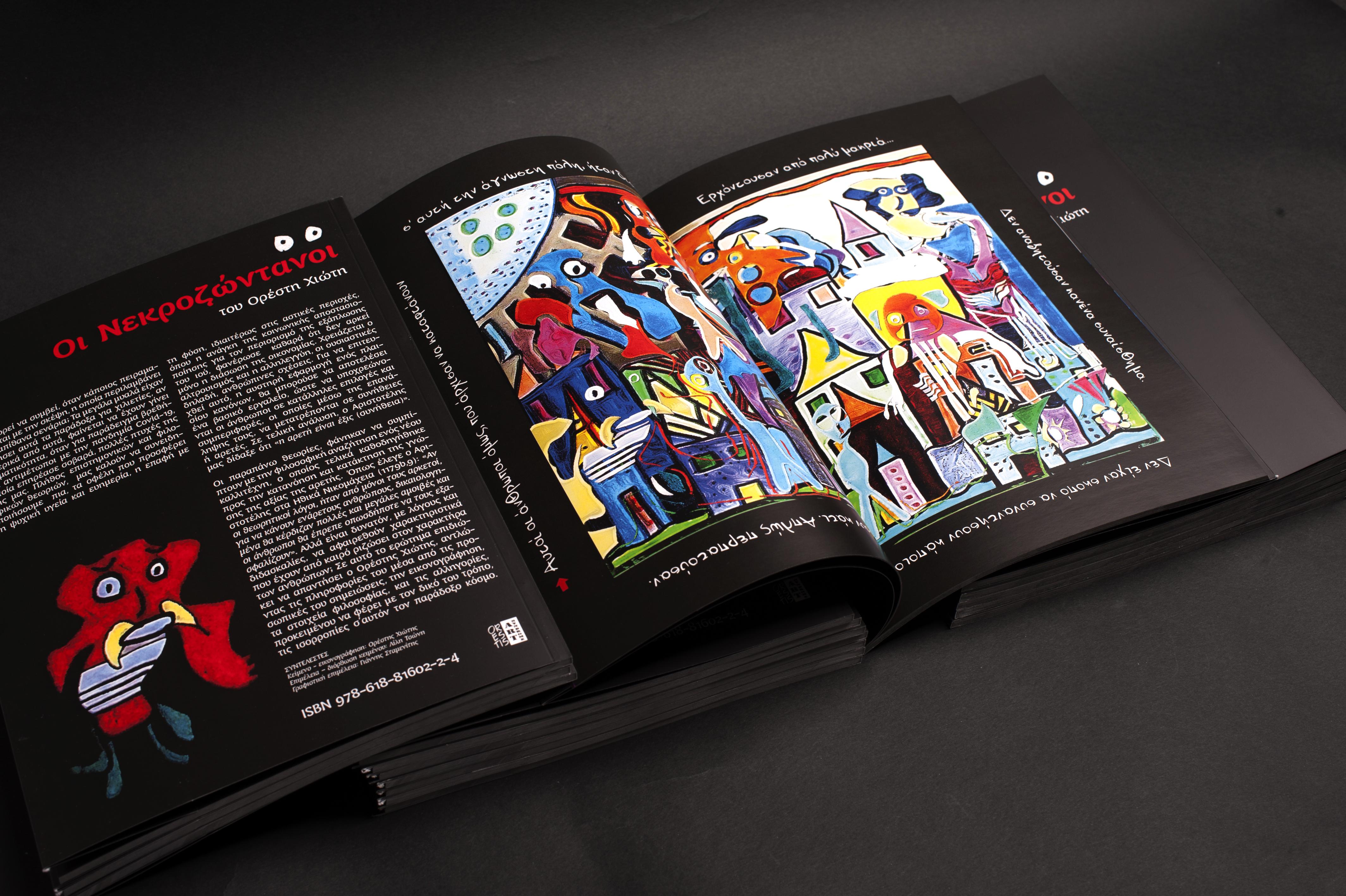 Απ: Λάθος! «Οι Νεκροζώντανοι» μου δεν είναι βιβλίο-κόμικ. Είναι ένα ζωγραφικό βιβλίο. Ο θάνατος -αν αυτόν εννοείτε μακάβριο- δεν είναι το κεντρικό μου θέμα, είναι η ζωή. «Οι Νεκροζώντανοι», δεν έχουν χιούμορ, έχουν μόνο συνείδηση. Έχουν συνείδηση το τι κάνουν! Προσπαθούν να βγάλουν στην επιφάνεια όσα είναι κρυμμένα στις καρδιές και στα σπίτια των ανθρώπων, χρησιμοποιώντας αυτήν την αόρατη κλωστή, με την οποία είμαστε συνδεδεμένοι όλοι μας. Για μένα, αυτή η κλωστή είναι «ο δρόμος» και αυτή ακριβώς προσπάθησα να εικονογραφήσω. Οι ζωγραφιές μου αναπαριστούν τα πράγματα και τους ανθρώπους από μέσα προς τα έξω. Από μέσα ξεκινάει η μεταμόρφωση τους και ως να φτάσει στην επιφάνεια είναι όλοι καρικατούρες του εαυτού τους.