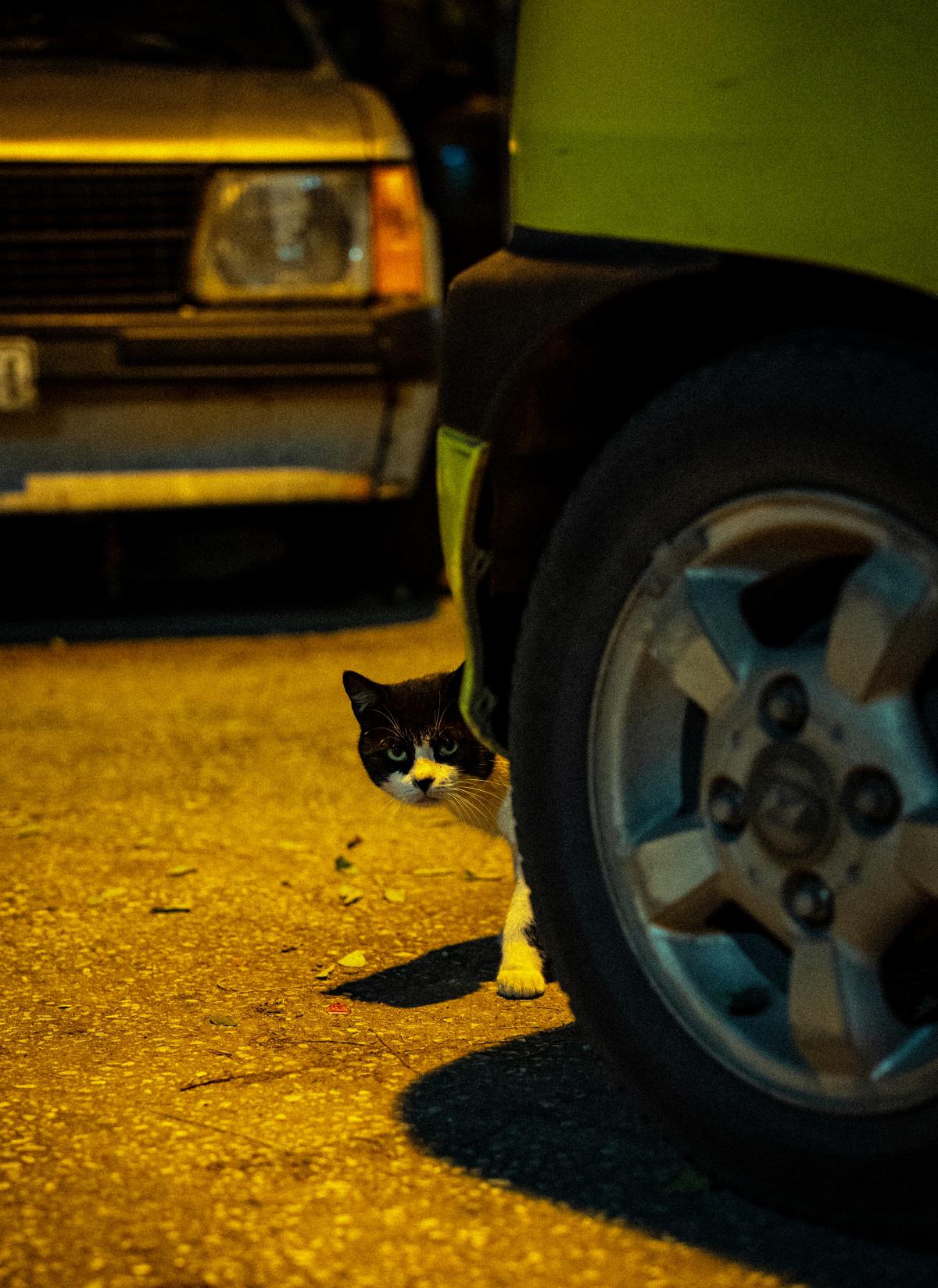 Ένα χέρι που με ταϊζε, μου έβαλε καρφιά στο φαγητό, σώθηκα ή με έσωσε κάποιος που με λυπήθηκε. Μόλις γέννησα τα παιδιά μου μου τα πήρανε και τα κλείσανε σε πλαστικές σακούλες τα έχασα, δεν πρόλαβα να τα δω να μεγαλώνουν, άλλαξα γειτονιά. Βρήκα κάποιον που με αγαπούσε και του γουργούρισα, μέχρι που σήκωσε το χέρι του επάνω μου με μανία νόμιζα πως ήθελε να με σκοτώσει, έτρεξα, το εσκασά και γλίτωσα. Kαι τώρα εσύ που με κοιτάς με φωνάζεις, αλλά δεν ξέρω αν πρέπει να σε πλησιάσω και να σε εμπιστευτώ, οι άνθρωποι είστε κτήνοι με εμάς. Εσύ τι θα έκανες στη θέση μου;