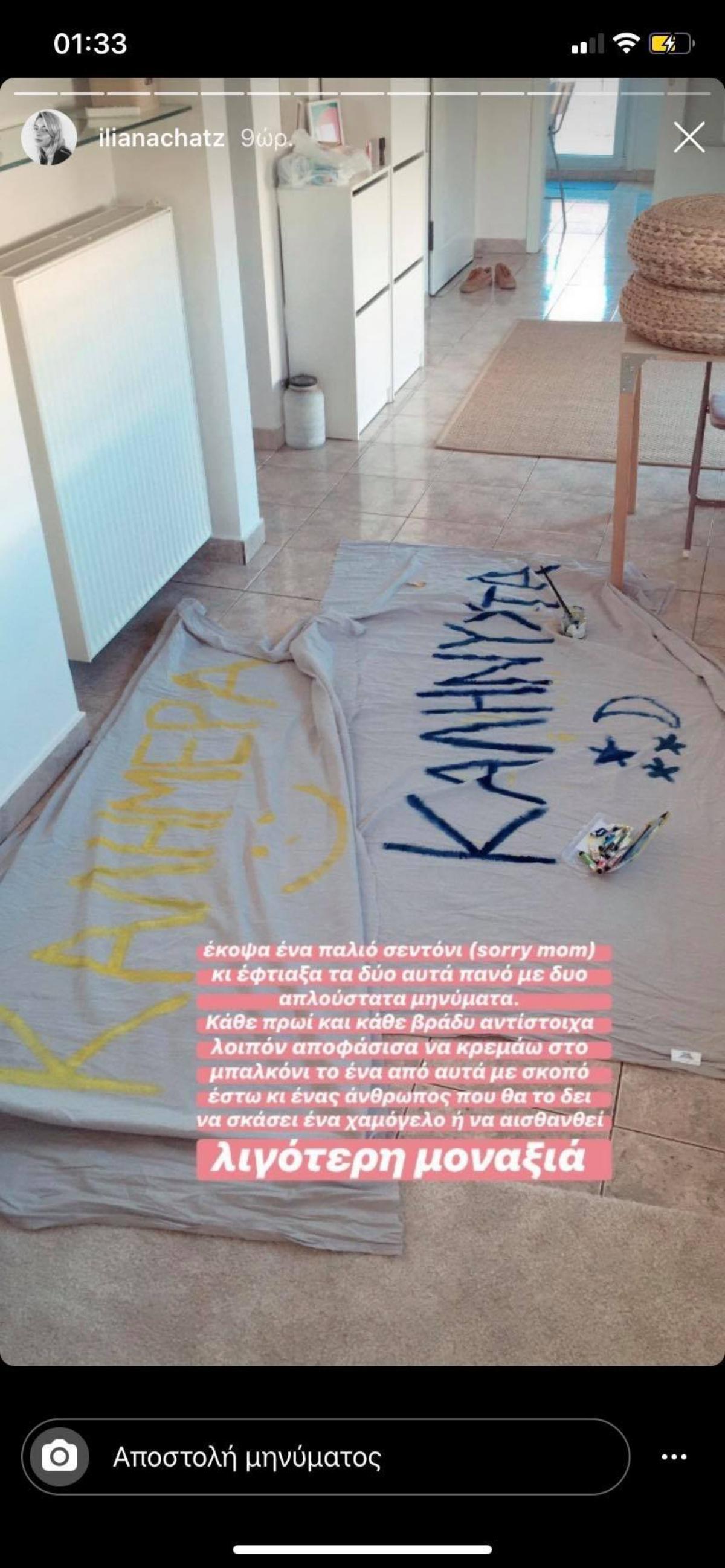 Κρεμασμένο σε ένα μπαλκόνι ένα καλήμερα, παίρνει σάρκα και οστά. Μία φοιτήτρια στη Θεσσαλονίκη, η Ηλιάνα Χατζηαναστασίου, σκέφτηκε κάτι που εμείς παραμελήσαμε. Τα μπαλκόνια είναι η δύναμη μας αυτές τις μέρες, οπότε γύρω στις πολυκατοικίες παρατηρούμε ανθρώπους που είναι μεγάλης ηλικίας, μόνοι έχουν για συντροφιά την τηλεόραση και ακούνε, μακριά από την τεχνολογία. Η ιδέα γεννήθηκε, τα λευκά σεντόνια γράφουν ”Καλημέρα” το πρωί και ”Καληνύχτα” το βράδυ.