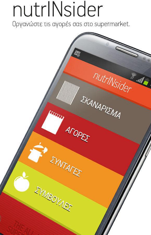 Το nutrINsider είναι ένα καινοτόμο app που δημιουργήθηκε για να οργανώσει με τον πιο έξυπνο τρόπο τις αγορές στα supermarkets αλλά και τις διατροφικές μας συνήθειες.