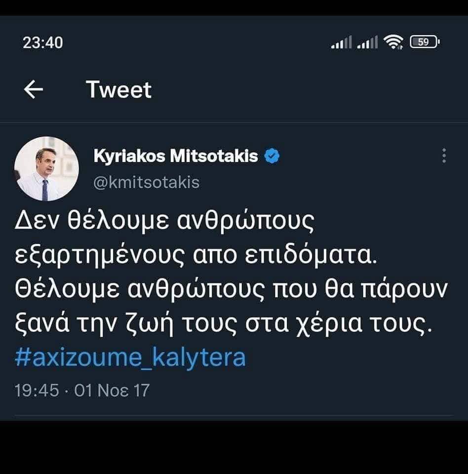 ΥΓ: Κανείς δεν μίλησε στον κ. Μητσοτάκη για τις ευεργετικές συνέπειες της μείωσης φόρων, για κίνητρα ανάπτυξης κλπ. Άγνωστες λέξεις.