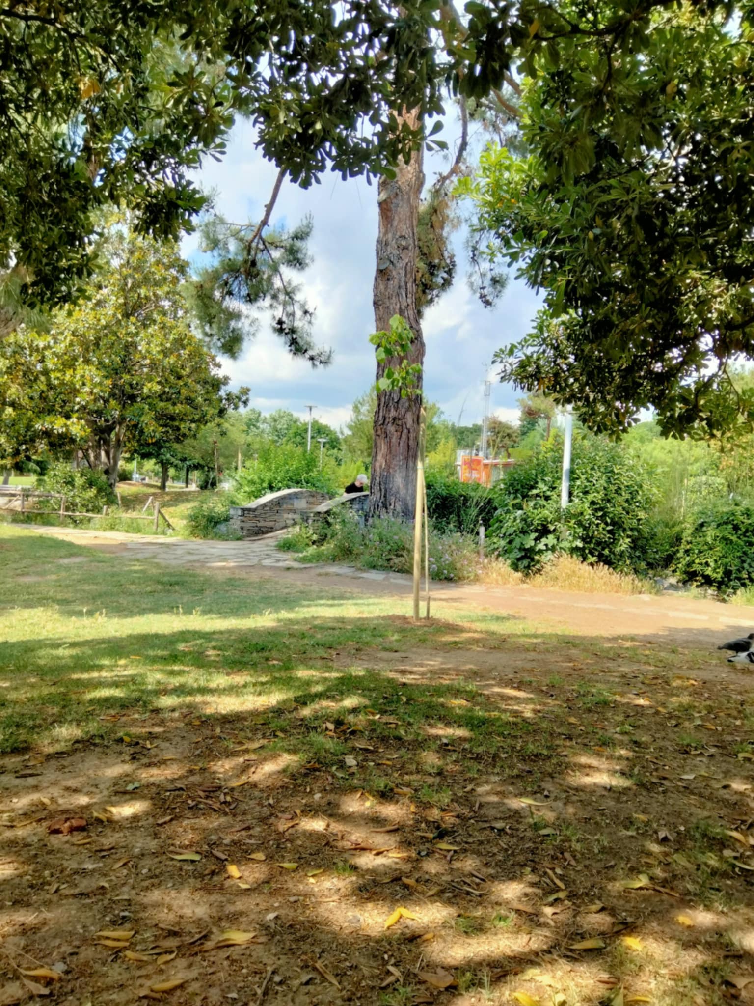 Αλλά ήταν και οι λίγοι περιπατητές που είχαν έναν αργό, ράθυμο βηματισμό, μια ήσυχη συμπεριφορά. Η μοναχική ηλικιωμένη που μάς πλησίασε για να μάθει τι κάνουμε και έπειτα κατευθύνθηκε χωρίς πολλές κουβέντες, χαμογελαστή στο παγκάκι της. Ο κηπουρός του Δήμου που έκανε το διάλειμμα του πίνοντας τον καφέ του όρθιος, μας χάζευε διακριτικά απόσταση. Παραδίπλα ένα νεαρό ζευγάρι, φοιτητές αν κρίνω από τα βιβλία πάνω στο στρωσίδι, λίγο διάβαζαν, λίγο σκρόλαραν στα κινητά τους, λίγο μιλούσαν αλλά κυρίως έπαιζαν με τον σκύλο τους. Απολάμβαναν τη σχέση τους και αυτό ήταν ολοφάνερο.