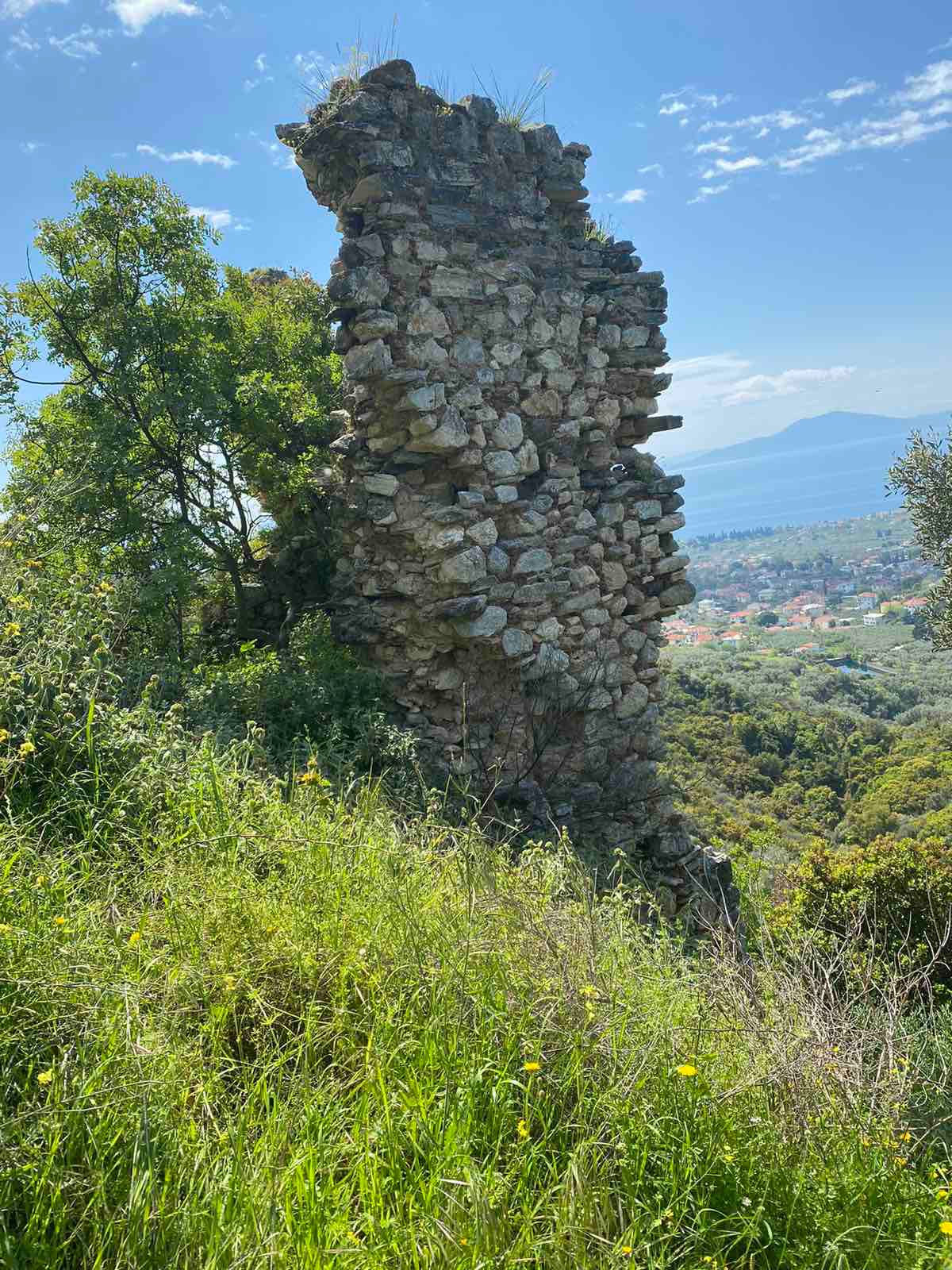 Η κατηφόρα με έβγαλε, μετά από ώρα, σε έναν αγροτικό δρόμο κι έπειτα στην πέτρινη βρύση της πλατείας του χωριού. Ήπια νερό και στάθηκα να κοιτάξω γύρω. Το χωριό λεγόταν Παλιόκαστρο. Τόσο απλά, τόσο ξεκάθαρα. Παλιό Κάστρο. Μόνο τότε άρχισα να συνειδητοποιώ τι είχα δει. Ότι ο πυργίσκος ήταν μονάχα ένα κομμάτι ενός συνόλου, μιας καστροπολιτείας ξεχασμένης, που είχε κάποτε σταθεί εκεί, φυλάγοντας τους πρόποδες του Πηλίου. Τα “αγριογουρουνίσια” ανοίγματα δεν ήταν τίποτε άλλο παρά ερείπια παλιών οικιών. Οι πέτρες που σκόνταφτα, τα κομμάτια κεραμικών, ήταν ίχνη ζωής. Όχι φαντάσματα, μα ιστορία ζωντανή, παρούσα, που απλώς είχε σωπάσει.