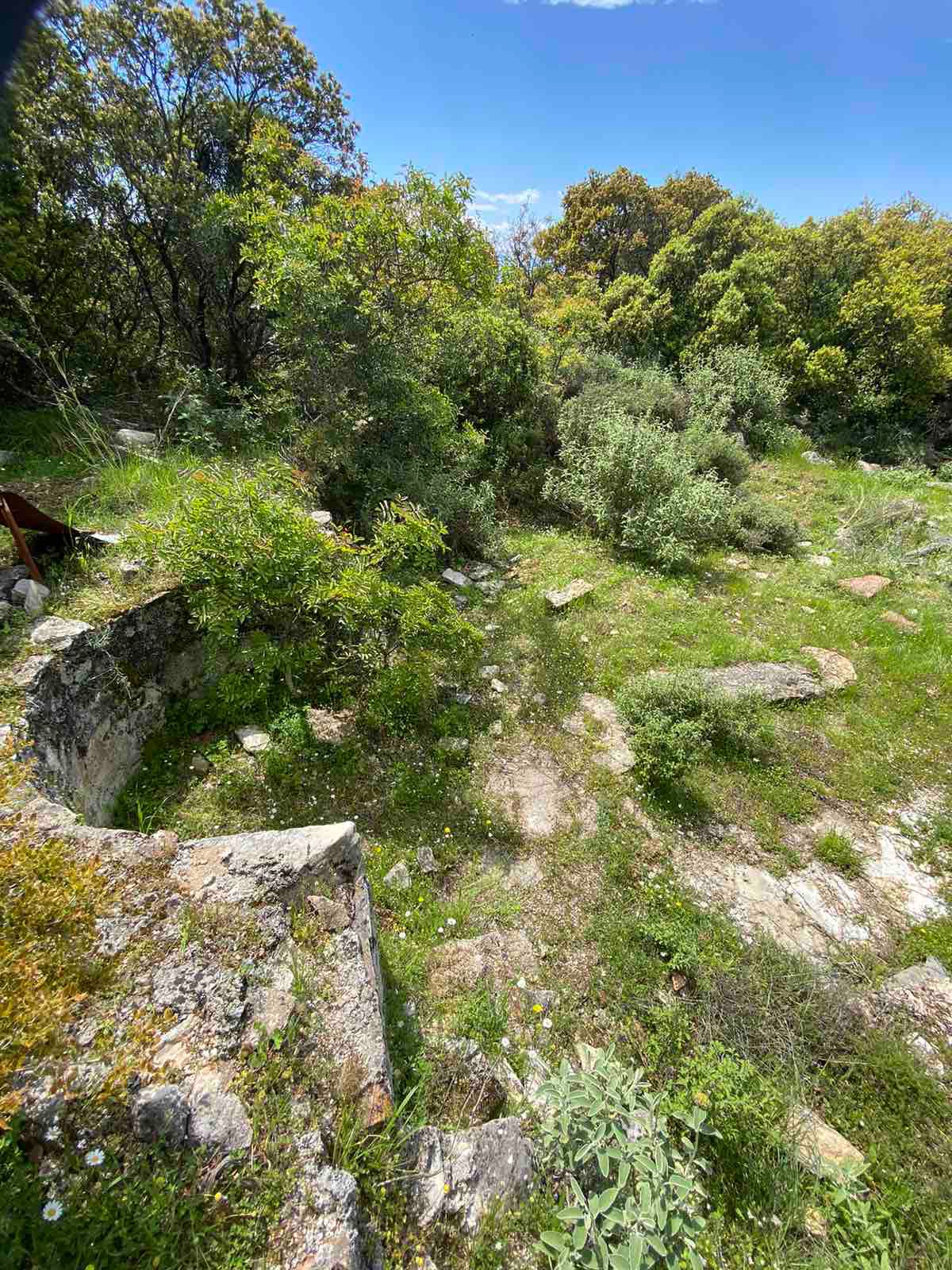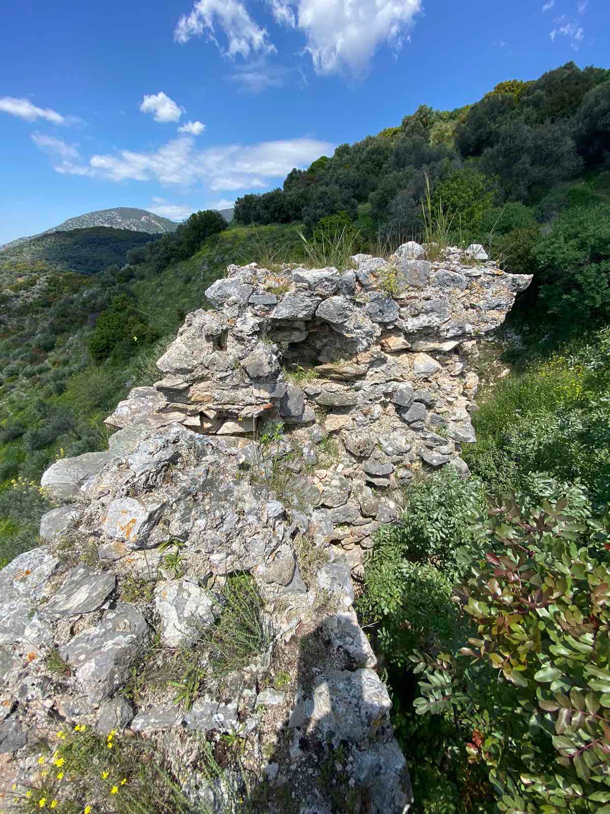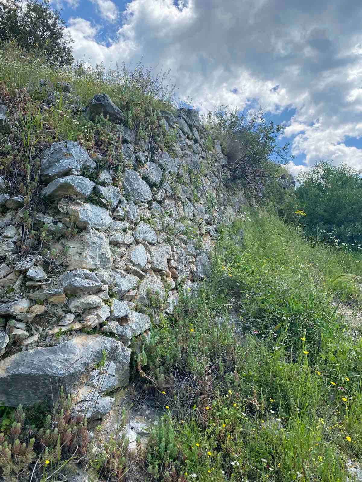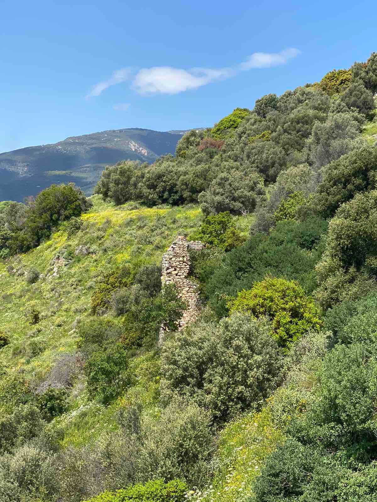 Και τότε το γοργό και ανυπόμονο βήμα μου σκόνταψε σε ένα χαμηλό τοιχίο. Νόμισα και πάλι πως είχα να κάνω με τις συνηθισμένες στον τόπο ξερολιθιές, που χώριζαν τους κλήρους και συγκρατούσαν το χώμα.