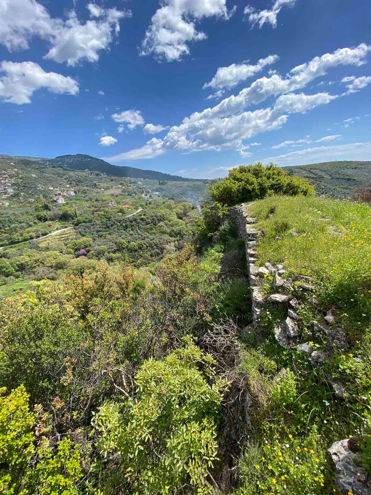 Έμεινα ώρα πολλή εκεί. Δεν έκανα τίποτα άλλο από το να κοιτάζω και να προσπαθώ να καταλάβω. Όχι μόνο με το νου, μα και με το δέρμα, με την όσφρηση, με την ακοή, με όλα τα αισθητήρια που είχαν ανοίξει, καθώς το σώμα μου αφουγκραζόταν τη μνήμη του τόπου. Το φως έπεφτε σιγά-σιγά πίσω από τις πλαγιές. Ήξερα πως έπρεπε να συνεχίσω, μα δεν ήθελα να φύγω. Τελικά, πήρα τον κατηφορικό δρόμο που φαινόταν να ξεκινούσε από κάτι σαν πύλη. Ίσως και να ήταν πύλη κάποτε για άλλους, παλιότερους διαβάτες. Περπατούσα αργά, σχεδόν με δέος, σαν να ήμουν ο πρώτος που τον ξαναδιάβαινε έπειτα από χρόνια.