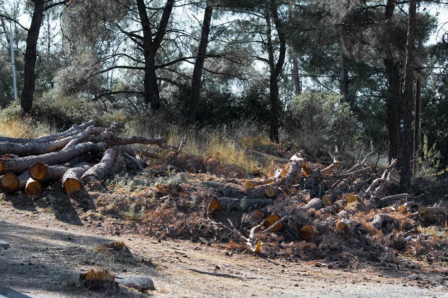 Παρατημένα κομμένα άρρωστα ξύλα στο ευρύτερο δάσος πέριξ του Πανοράματος