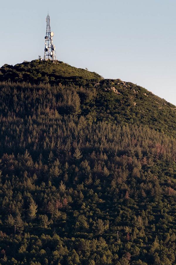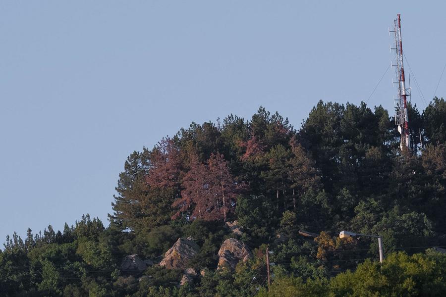 Άρρωστα ξερά δέντρα στη μικρή κορυφή με κάποιες κεραίες, πριν το γνωστό μέρος με τις πολλές κεραίες στο Χορτιάτη.