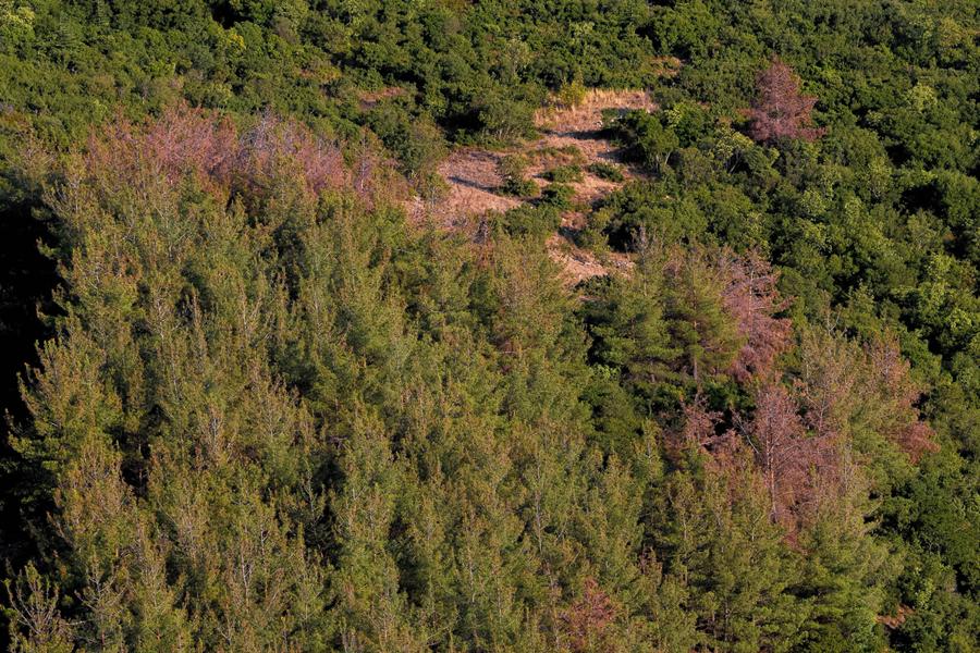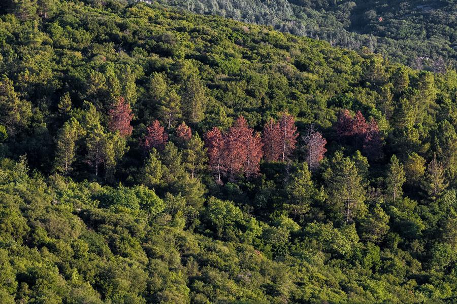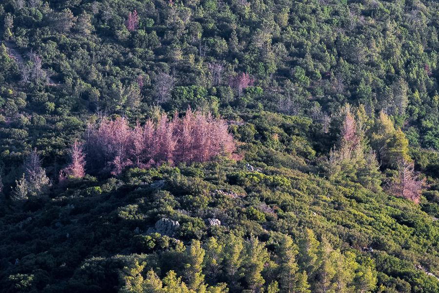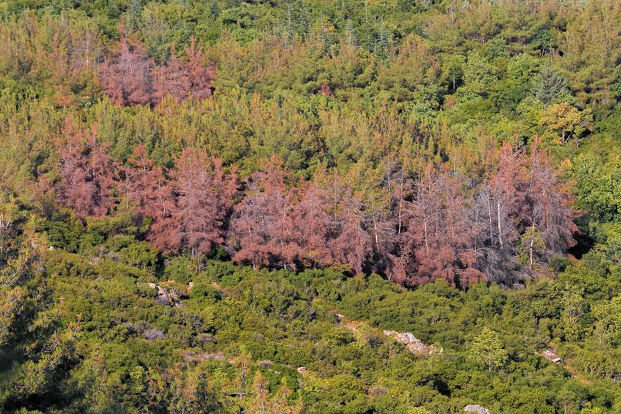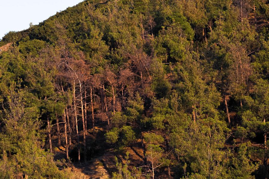 Άρρωστα δέντρα στο δάσος επάνω από το Τριάδι.