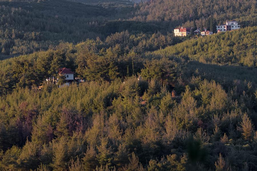 Σπίτια μέσα στο δάσος (κυριολεκτικά),περιτριγυρισμένα από άρρωστα και ξεραμένα άκοπα δέντρα.