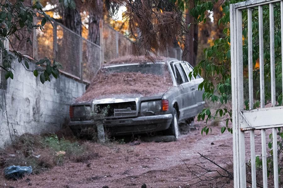 Παρατημένο αυτοκίνητο για δεκαετίες, μέσα σε στενό στο οποίο υπάρχουν σπίτια, δίπλα σε δάσος.