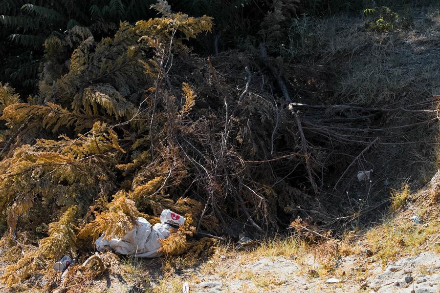 Παρατημένα ξερά κλαδιά έξω από αυλή σπιτιού δίπλα το δάσος στη Θέρμη.