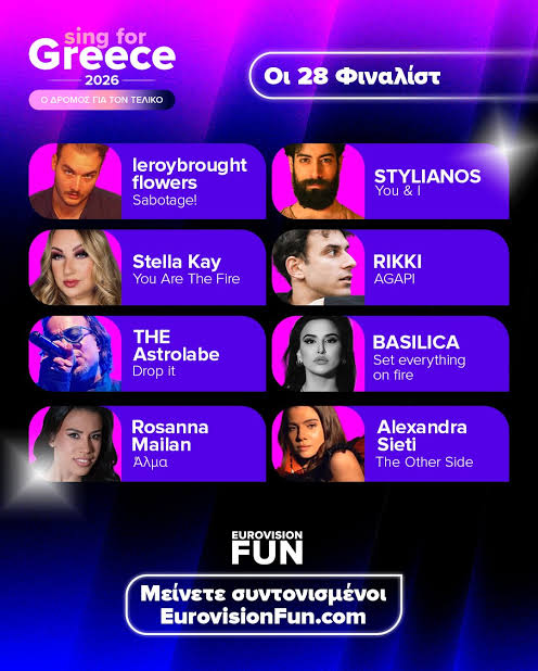 Μέχρι τότε εκτός της Evangelia που προσπαθεί για δεύτερη φορά να κερδίσει τον εθνικό τελικό Sing For Greece, κρατάμε στα υπόψιν μας τον Ακύλλα με το Ferto, τη Mikay με το Labyrinth, την Alexandra Sietti με το The Other Side , τον D3lta με το Mad About it τον Rikki με το Αγάπη και τις Dinamisss με το Chaos. Ο Good Job Nicky ή GJN είναι ο γιος του Γιάννη Πάριου Νικόλας Βαρθακούρης, ενώ ο D3lta ο γιος του εφοπλιστή Κούστα από τον πρώτο του γάμο.