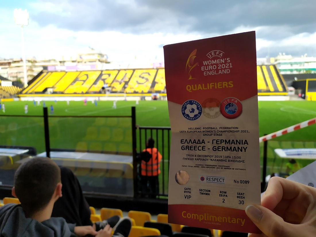 Τώρα, δύο- τρεις ντουντούκες και κάποιες τσιριχτές φωνές τραγουδούν «Ελλάς ολέ ολέεεε, δεν σταματώ να τραγουδώ ποτέ». Λίγοι στην πόλη ήξεραν για αυτόν τον αγώνα. Η Εθνική Ομάδα Ποδοσφαίρου Γυναικών αντιμετώπιζε την Εθνική Γερμανίας για τα προκριματικά του EURO 2021.