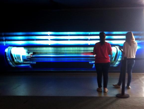 Η έκθεση χωρίζεται σε 5 θεματικές ενότητες μέσα σ’ ένα τούνελ που σου δίνει την αίσθηση ότι βρίσκεται σε ένα διαφορετικό κόσμο σαν να βρίσκεσαι και εσύ μέσα στον επιταχυντή και να ταξιδεύεις.