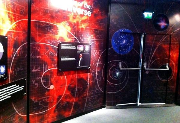 Στην έκθεση θα μάθετε όλες τις πληροφορίες για την γέννηση και εξέλιξη του σύμπαντος και φυσικά για το “σωματίδιο του θεού” που ανακάλυψε ο Peter Ηiggs και για το οποίο πήρε το βραβείο Νόμπελ το 2012.