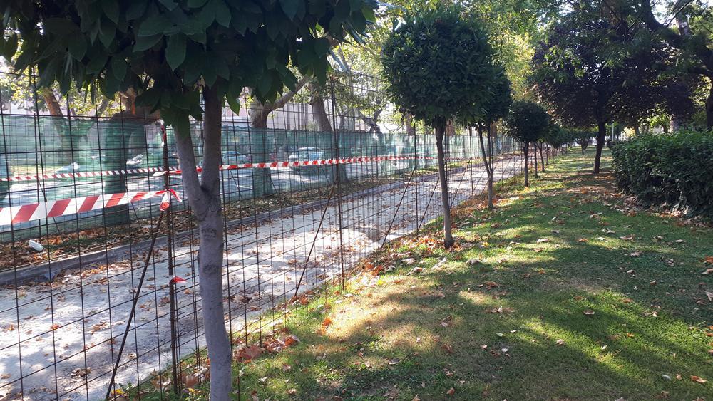 - Έναν μεγάλο χώρο κλεισμένο με λαμαρίνες που σε μια του πλευρά τουλάχιστον δεν έχει χώρο για πεζοδρόμιο. (Πλατεία Ελευθερίας)