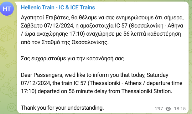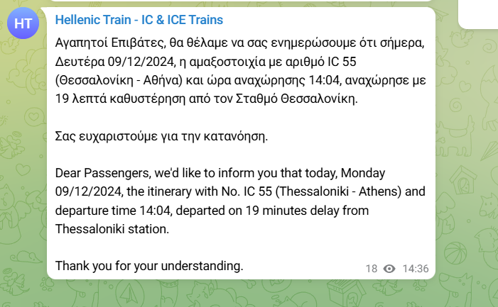 Εδώ και μια εβδομάδα δεν υπάρχει ένα δρομολόγιο τρένου που να έχει φτάσει στην ώρα του στη γραμμή Αθήνα-Θεσσαλονίκη - Γράφει ο Α. Γαλανόπουλος