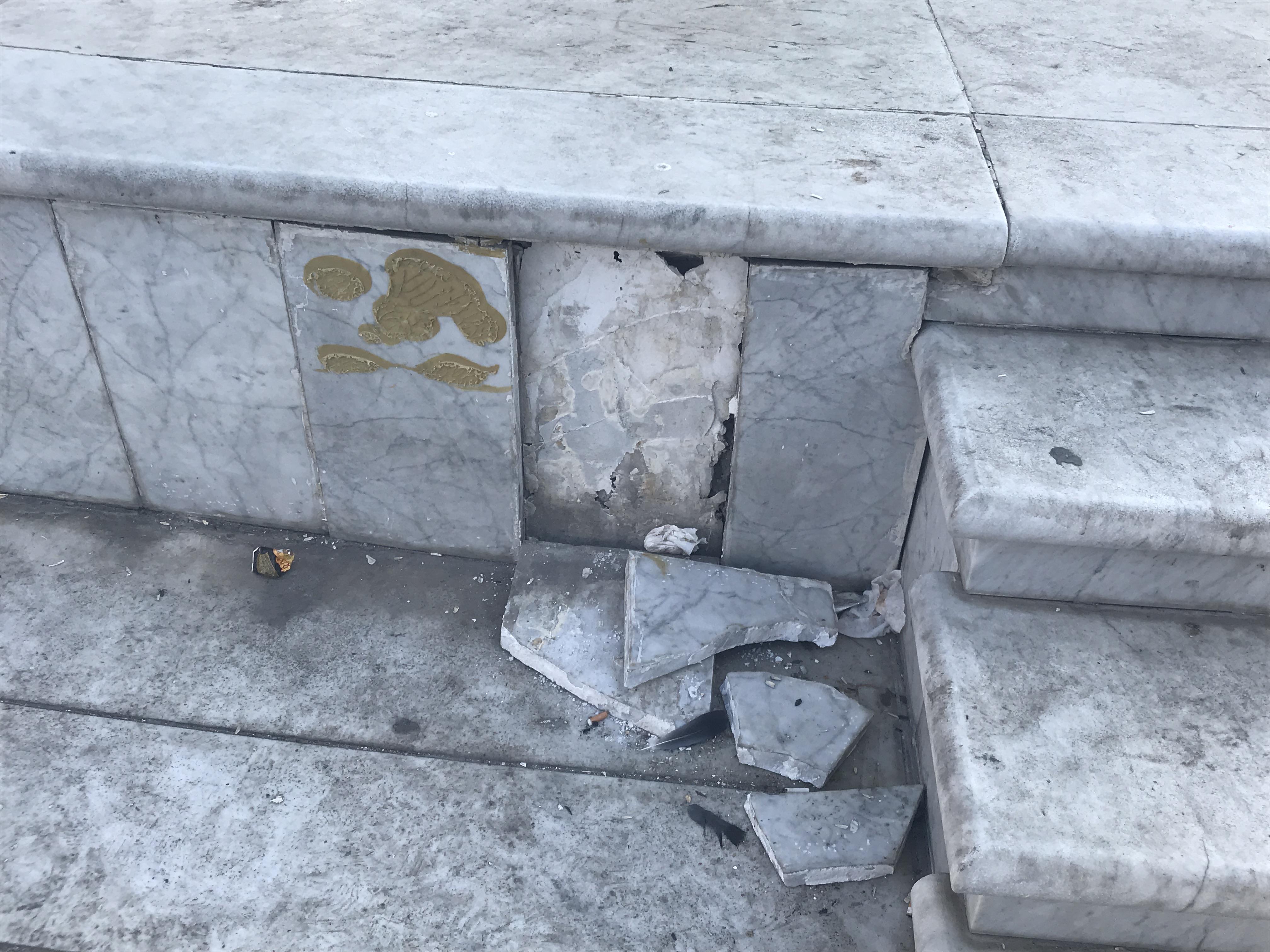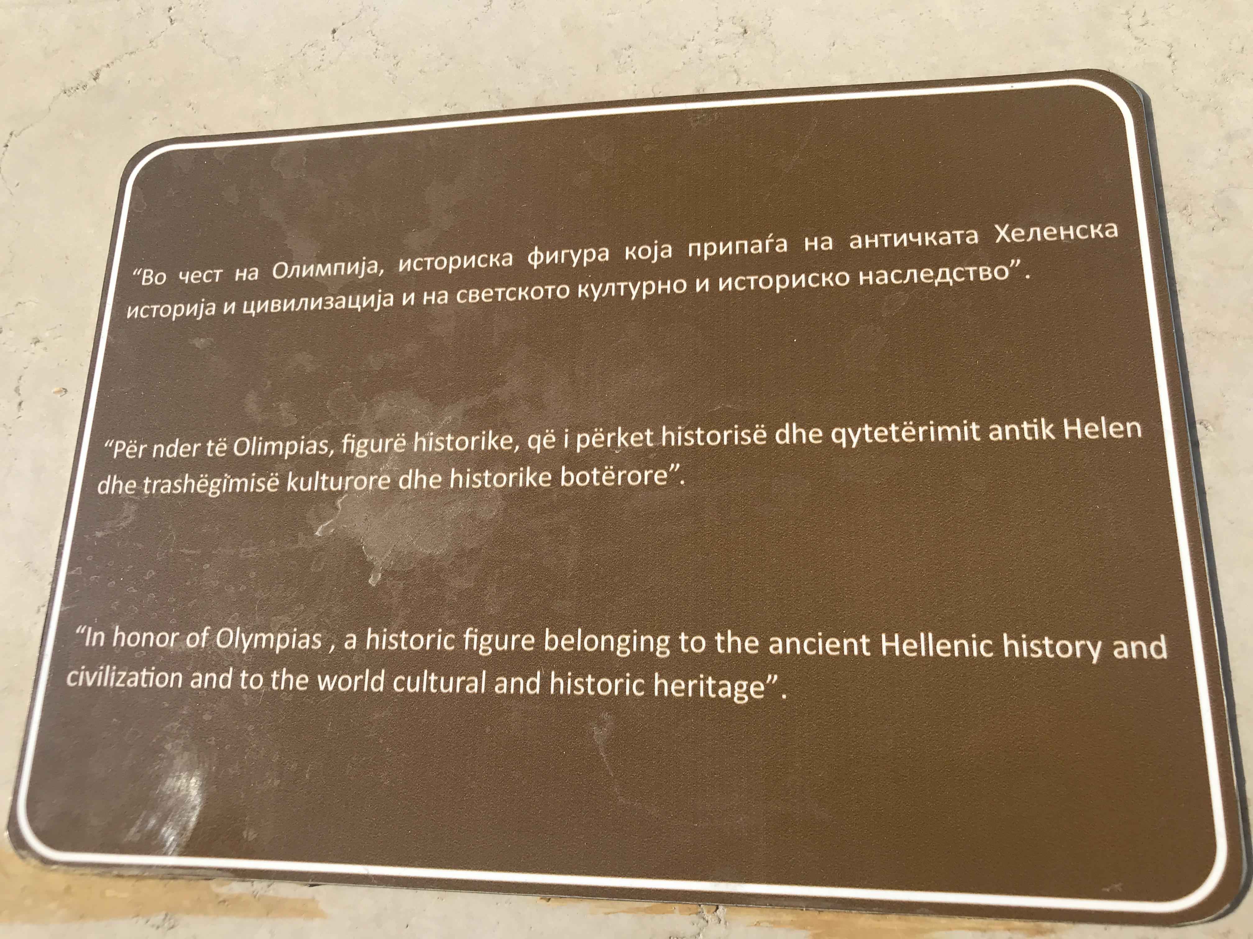 Αυτή στο άγαλμα του μεγάλου Αλεξάνδρου ενώ τοποθετήθηκε έγινε αμέσως στόχος βανδαλισμών και στην συνέχεια αφαιρέθηκε. Στο άγαλμα του Φιλίππου το ίδιο. Ιδιαίτερο ενδιαφέρον προκαλεί το γεγονός πως στο άγαλμα της Ολυμπιάδας η επιγραφή παραμένει άθικτη και αναφέρει πως «Η Ολυμπιάδα είναι ένα πρόσωπο της αρχαίας ιστορίας και αποτελεί παγκόσμια ιστορική προσωπικότητα, κληρονομιά προς όλο το κόσμο», αποδεικνύοντας τον βαθιά ριζωμένο εθνικισμό και την ανδροκρατία που επικρατεί στα Βαλκάνια.