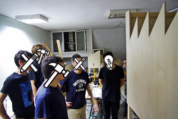 Το έναυσμα δόθηκε από την Επισκοπόν και τον θεσμό “Θεσσαλονίκη 2014: Ευρωπαϊκή Πρωτεύουσα Νεολαίας”, με την υποστήριξη του archstudies.gr. Όσον αφορά στην υλοποίηση, όμως, το αναλάβαμε μόνοι μας. Θέλαμε να δοκιμάσουμε τις δυνατότητες μας. Η κατασκευή μας πήρε μια εβδομάδα. Το κομμάτι της οργάνωσης της έκθεσης και της αδειοδότησης ήταν που χρειάστηκε τον περισσότερο χρόνο. Η διαδικασία υλοποίησης κινήθηκε γύρω από τρεις άξονες, δύο από τους οποίους αναφέραμε και νωρίτερα: πρώτον θέλαμε να προβάλουμε τις εργασίες μας έξω από το στενό πλαίσιο της αρχιτεκτονικής σχολής και του εξειδικευμένου κοινού κοινωνικοποιώντας το περιεχόμενο τους, έπειτα μας γοητεύει η επαφή με την ύλη/το υλικό και η διαδικασία της επεξεργασίας που οδηγεί στο τελικό δημιούργημα και τρίτον η προσέγγιση άλλων ομάδων και η μελλοντική συνεργασία.