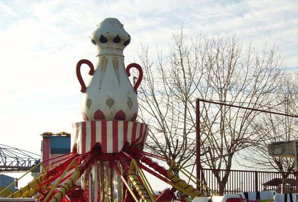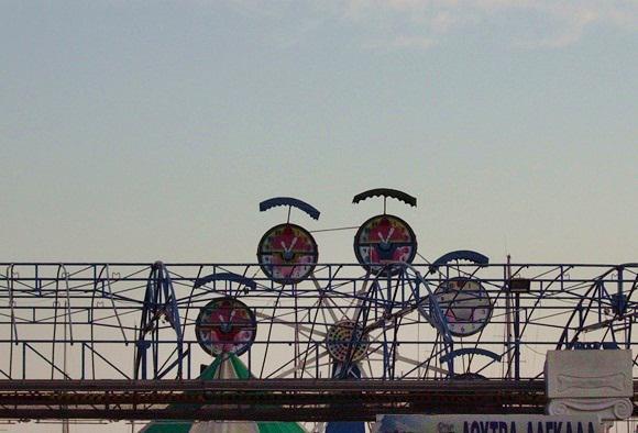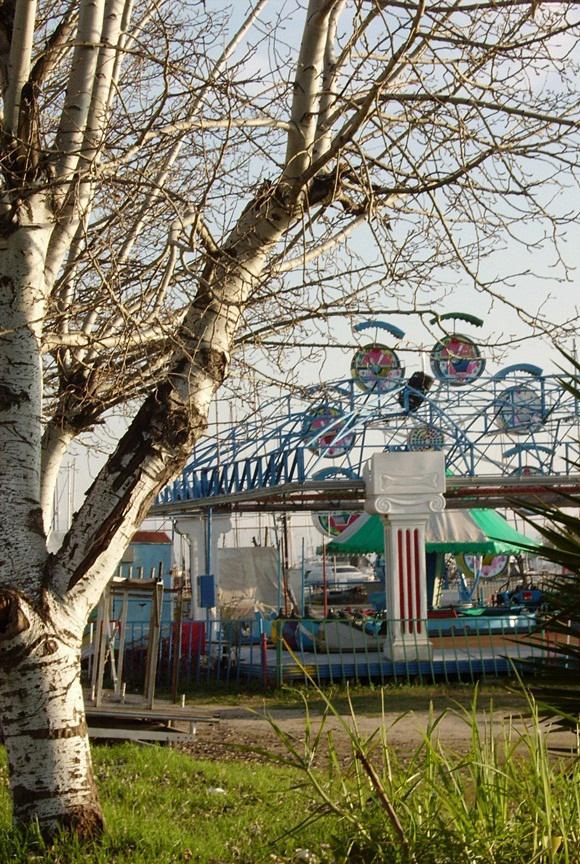 Γλάροι, κοπάδια μικρά κεφαλόπουλα στις πρώτες βόλτες τους, ένας ερασιτέχνης ψαράς να μεταδίδει την ηρεμία που του δίνει το χόμπι του, χρώματα να παίζουν, η τέλεια μέρα! Αλλά εμένα, χτες, πιο πολύ με τραβούσε η πλαζ. Και κυρίως, το διπλανό μίνι – Λούνα Παρκ. Έτσι όπως έχει μείνει άδειο εδώ και τόσο καιρό, έχει πάρει μια γκροτέσκα και κάπως “γκόθικ” μορφή. Ήταν και το φως που κρύφτηκε εκείνη την ώρα πίσω από κάτι σύννεφα, τα χρώματα που σε κάποια σημεία ξεθωριάζουν, σίδερα και μπογιές που ξεφτούν κι έτσι όπως έβλεπα σαν φαντάσματα του παρελθόντος μια παλιά μας παρέα να παίζει στα συγκρουόμενα – είχαμε κάποτε περάσει πάρα πολύ όμορφα σε αυτόν τον μίνι χώρο – άρχισα να τραβώ φωτογραφίες. Μέσα δεν μπήκα, γιατί η ώρα πίεζε είχε αρχίσει να περνά το μεσημέρι. Αλλά δεσμεύτηκα για επόμενη επίσκεψη.