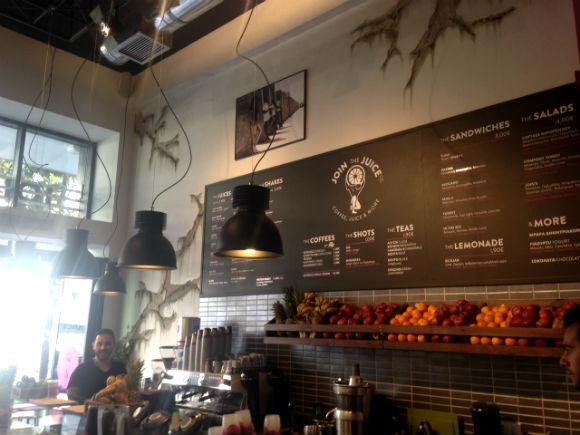 Περπατάς στην Παλαιών Πατρών Γερμανού. Ζέστη, κούραση, δίψα. Πέφτεις πάνω σε μια όαση. Join the Juice Co, διαβάζεις. Καινούργιο μέρος, φρέσκο, αλλιώτικο. Όχι, λες, δεν θα παραγγείλεις τον δεύτερο καφέ της ημέρας αλλά χαζεύεις απορημένα τον πίνακα ψηλά που αναγράφει τα ονόματα και τα είδη των χυμών.
