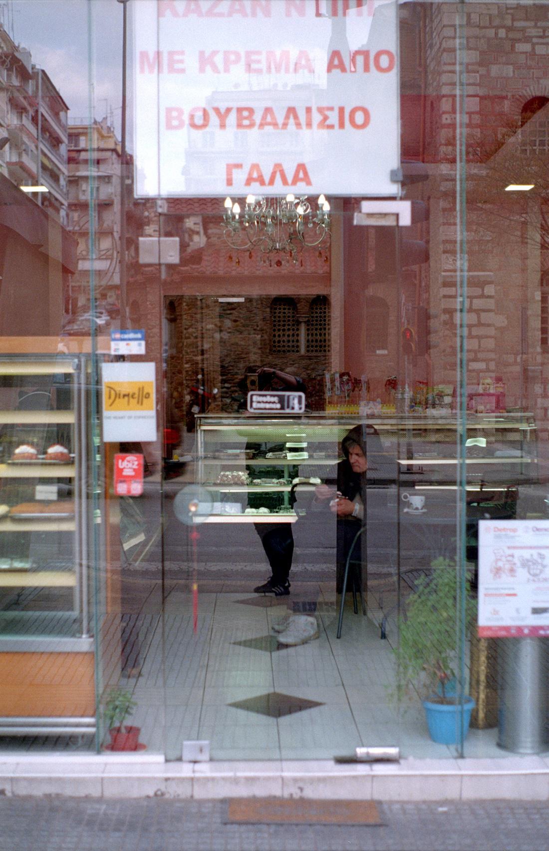 It was still early, around noon, and I was walking by the port. I felt my pace had slowed down after London, but the slowness of the people lingering over the promenade was hard to keep up for me, it almost tired me. As I was scrambling my way through the crowd, I felt I needed a push of energy. I had developed that habit while working in London and hadn’t managed to adapt to the Greek routine of drinking cold coffee yet. It took me only a turn of my head to spot the next kiosk. And in there, behind walls of newspapers, behind legions of coloured lighters and sweet candy, behind a tiny sealable hatch, sat the owner on his swivel stool who greeted:
