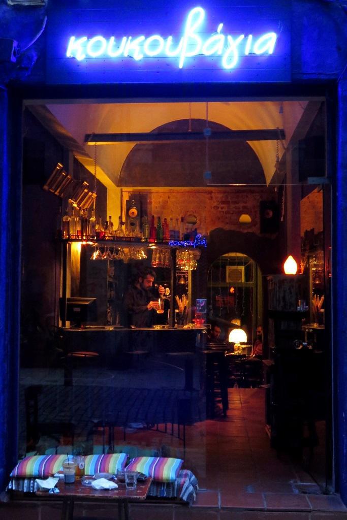 Σε ένα κτίριο του 1917 που γνώρισε στο πέρασμα ενός αιώνα δεκάδες μεταλλάξεις ως προς τη χρήση του και η βοή του μύθου του κουβαλά, με ιστορίες πολλές και διαφορετικές στο ενεργητικό του, η Κουκουβάγια προσφέρει τη νέα του ζωή. Οι δημιουργοί της το επέλεξαν για το στιλ, την ιστορία και τις δυνατότητες του. Σε εξαιρετικά ήσυχο σημείο του κέντρου, με απίστευτη αίσθηση σκηνικού στον πεζόδρομο, χάρη στα γειτονικά κτίσματα που το περιβάλλουν αλλά και με δουλειά πολύ ώστε το αποτέλεσμα να δικαιώνει τις προσδοκίες σου. Ο ορισμός του χειροποίητου αφού όλα του τα έπιπλα είναι φτιαγμένα στο χέρι και εντελώς διαφορετικά μεταξύ τους. Αληθινά δαιδάλωδες αφού οι χώροι του όσο εισέρχεσαι σου φανερώνουν το εσωτερικό μιας παλιάς εσωτερικής αυλής που περιέκλειε μια σειρά επιχειρήσεις εντός της και ένα ωραίο αίθριο, που σήμερα σκεπασμένο προσφέρει το φως του ουρανού του.