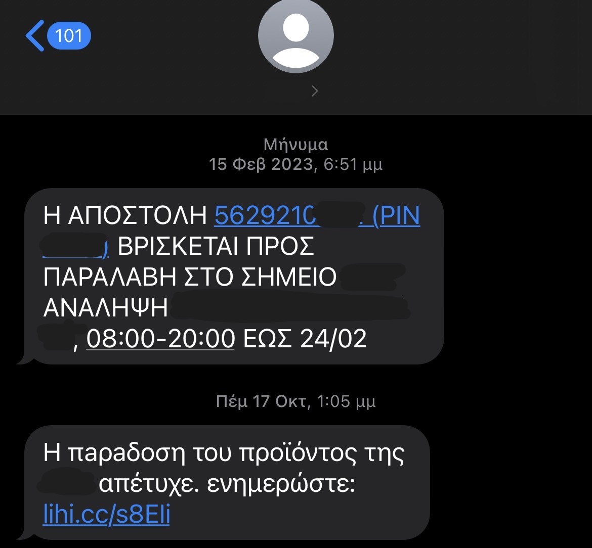 Ώσπου μου ήρθε μήνυμα στο κινητό “H π@ρ@δοση του προϊόντος της -x- μεταφορικής απέτυχε. ενημερώστε: linkπουθασουφάειταλεφτά”.