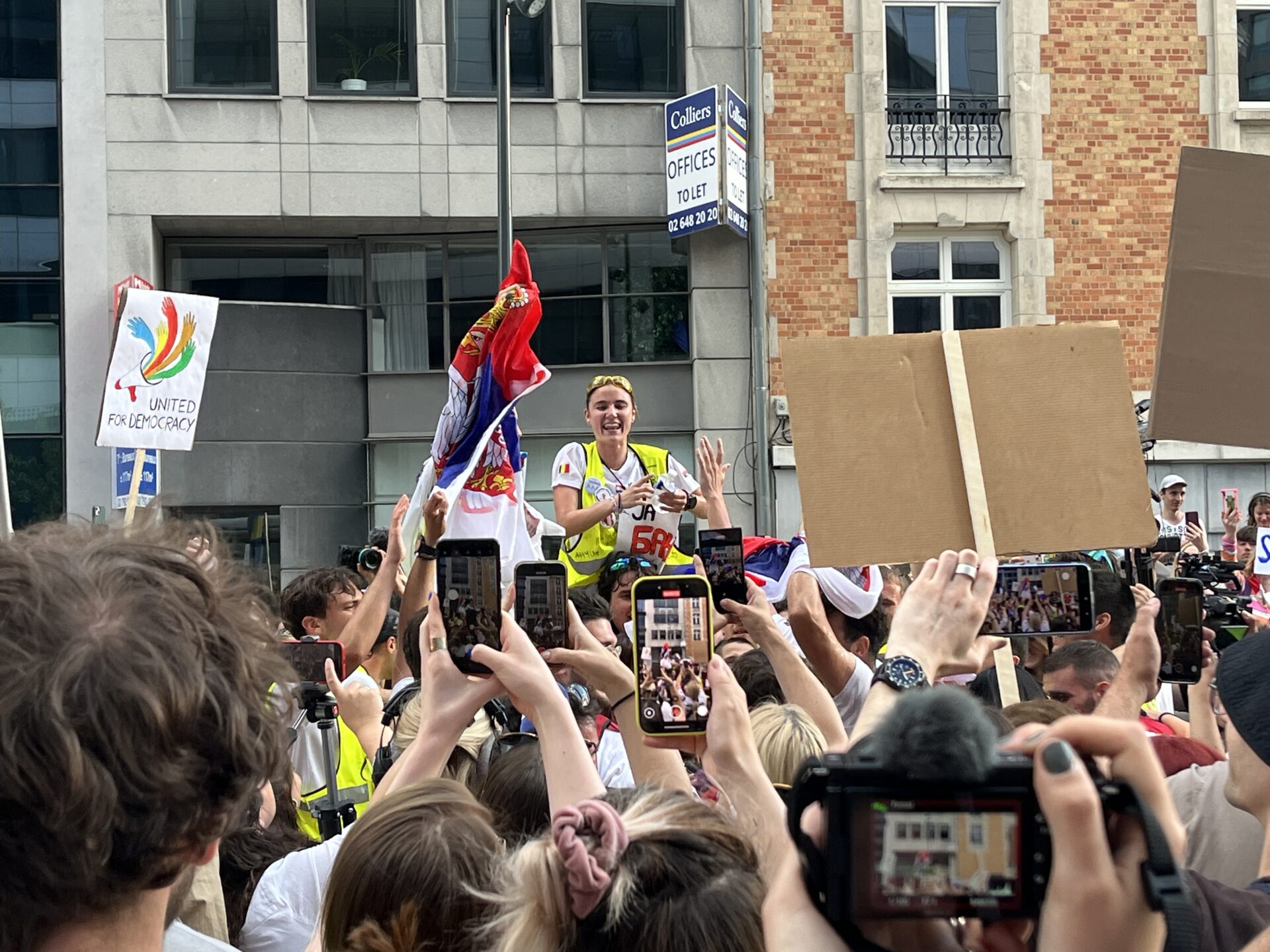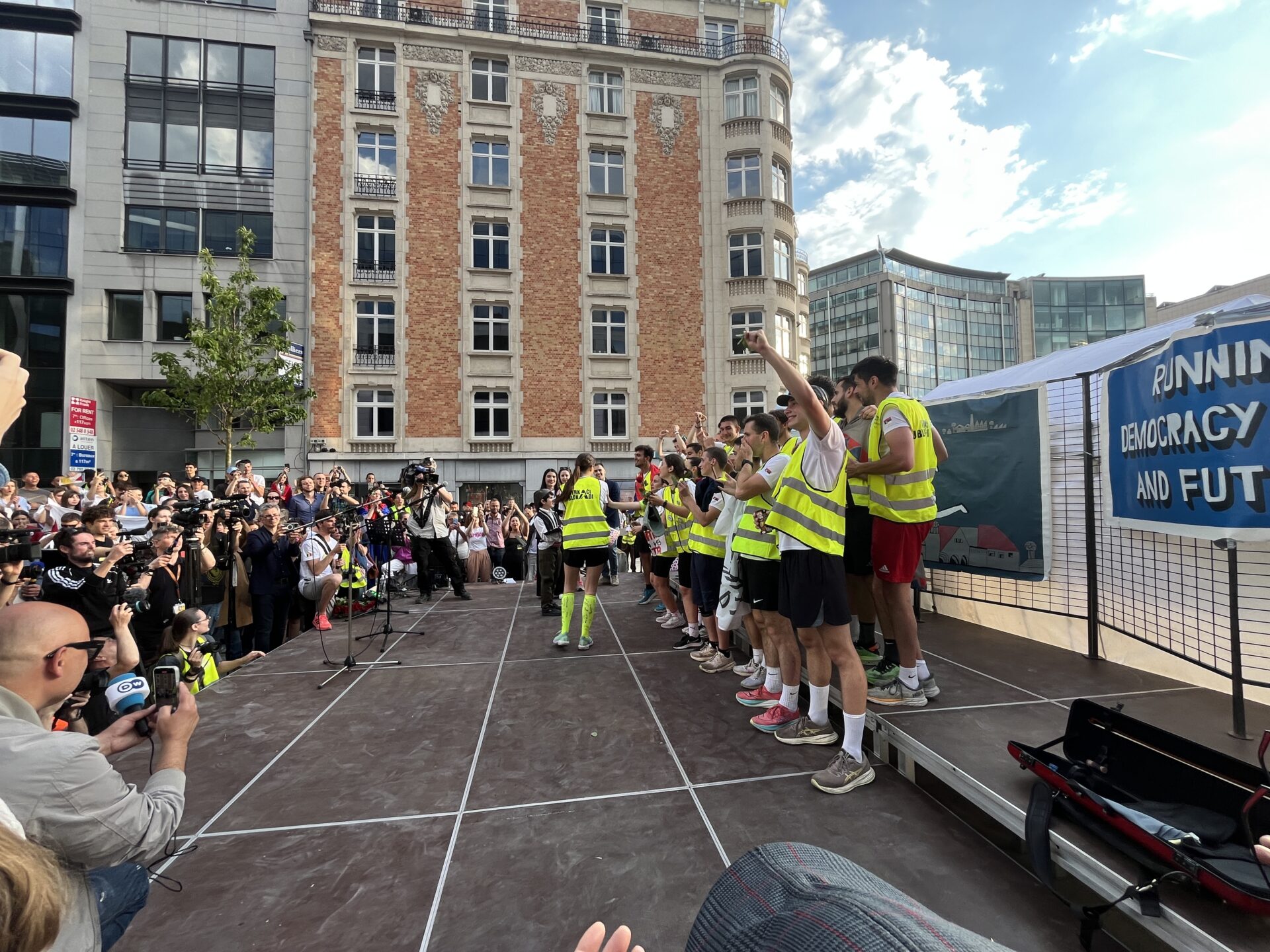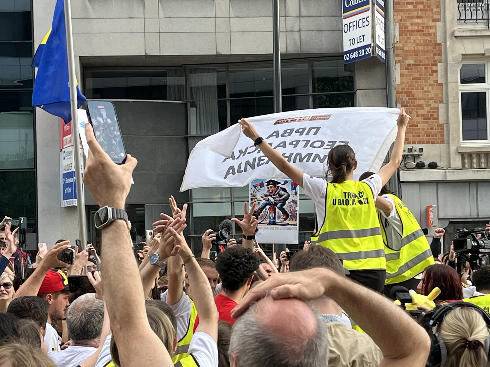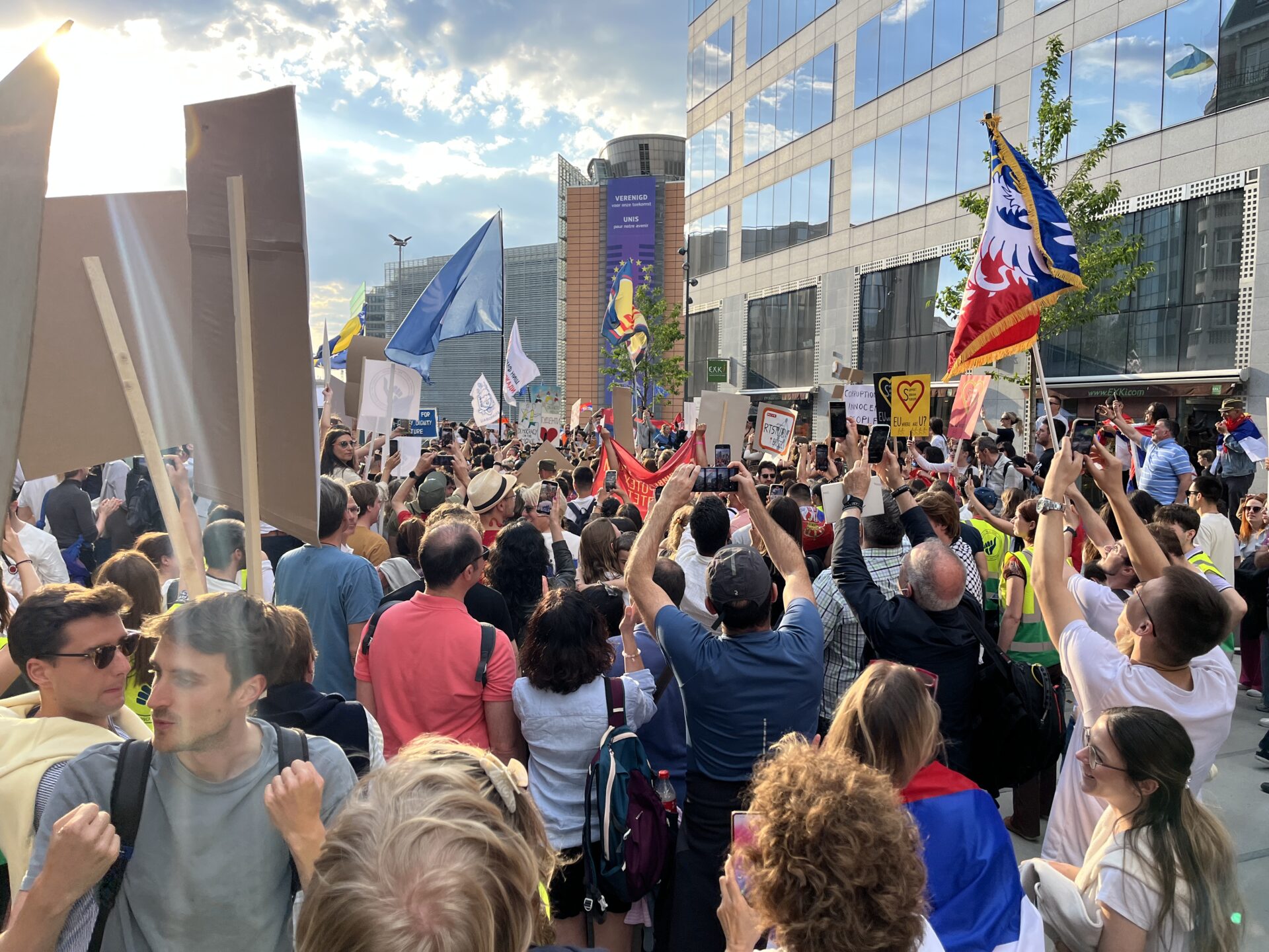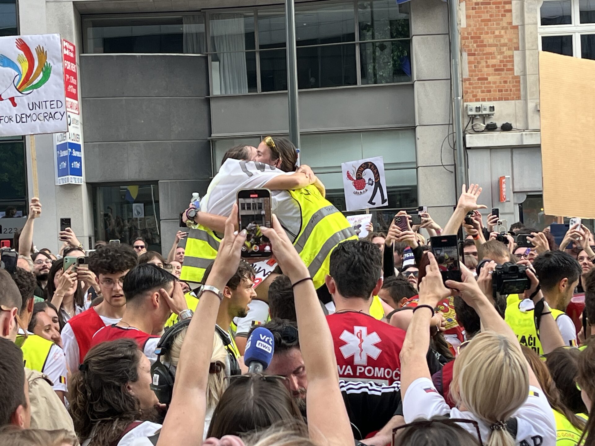 Τους υποδεχθήκαμε στην πλατεία Σούμαν. Εκατοντάδες πολίτες και όλη η βαλκανική κοινότητα της πόλης.