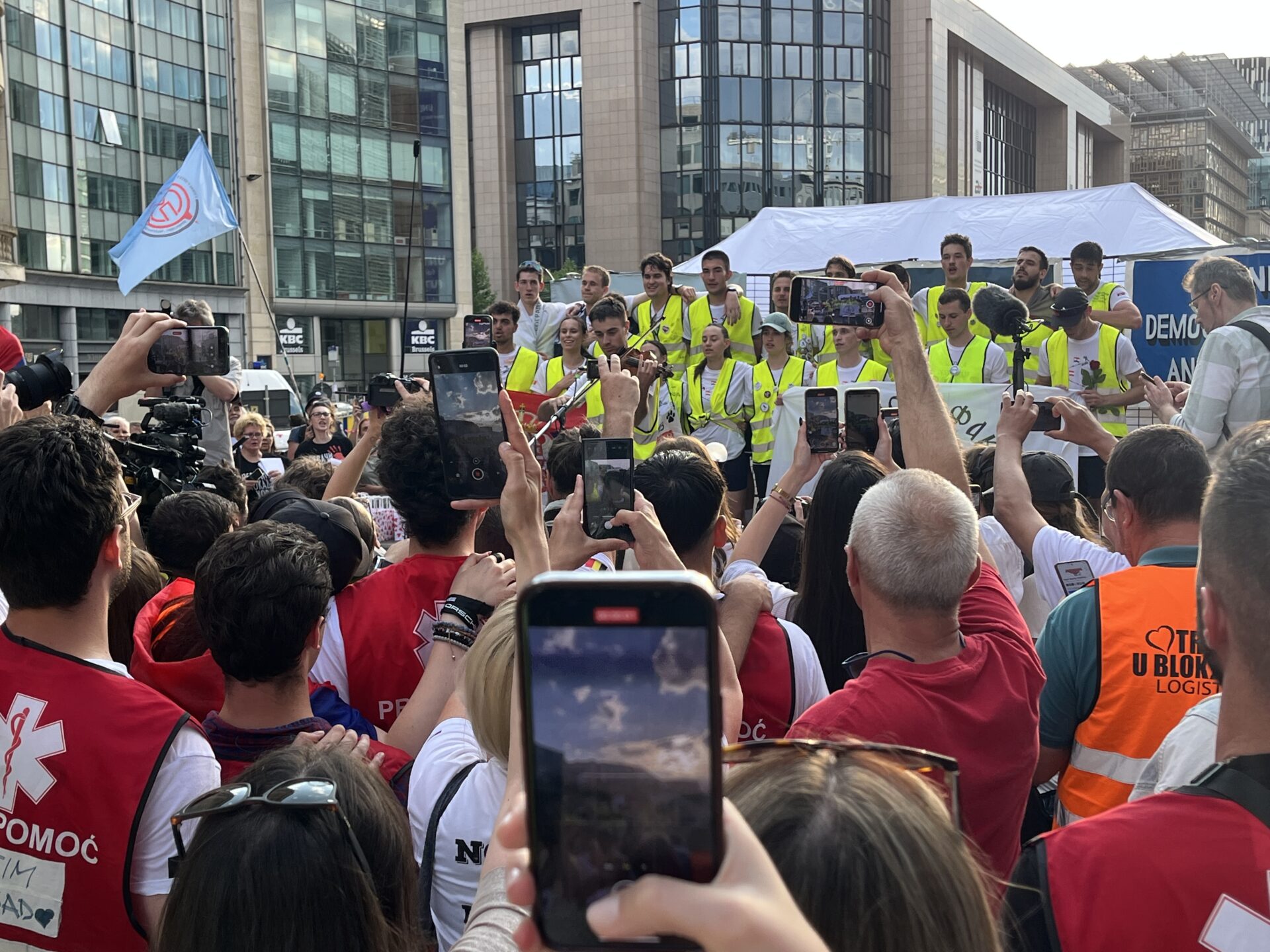 Είναι νέα παιδιά, φοιτητές που περπάτησαν από την πόλη τους, το Νόβι-Σαντ της Σερβίας μέχρι τις Βρυξέλλες του Βελγίου.