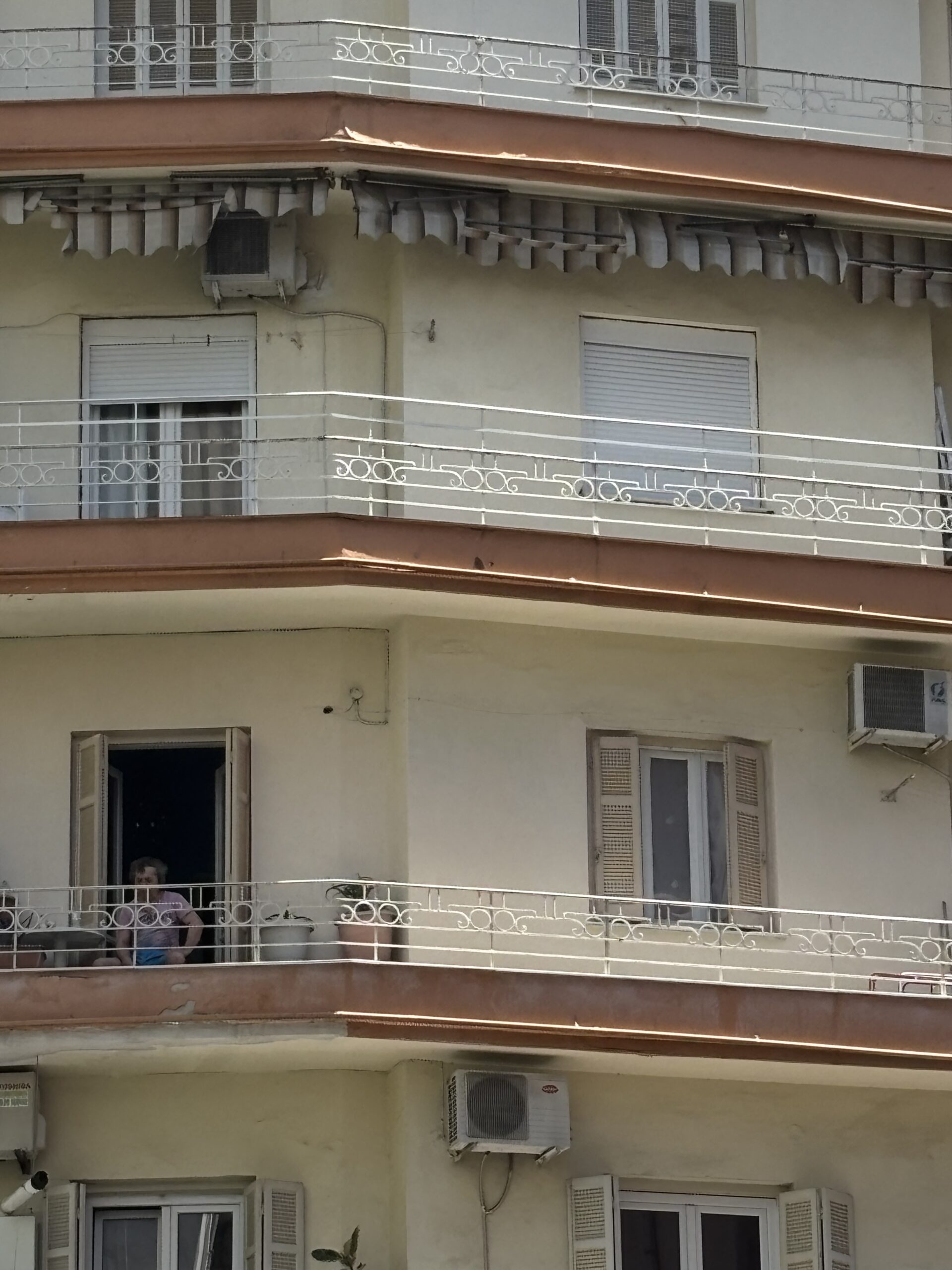Λίγα λογία μεταξύ των ανθρώπων στα μπαλκόνια, «Τι θα μαγειρέψεις;» ρωτούσε η μάνα μου, και ξεκινούσαν οι γειτόνισσες τις ιστορίες τους και τις ανταλλαγές υλικών για το μαγείρεμα. Πλέον τα μπαλκόνια είναι για για το άπλωμα ρούχων – και αυτό στα γρήγορα μη δούμε κανέναν απέναντι και χρειαστεί να μιλήσουμε.