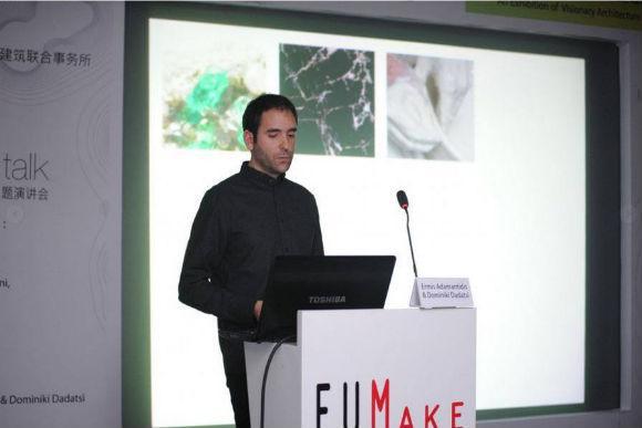 Ο Ερμής Αδαμαντίδης και η Δομινίκη Δαδάτση βρέθηκαν στο πάνελ των ομιλητών για τα εγκαίνια της έκθεσης στη 1 Νοεμβρίου μεταξύ άλλων ανερχόμενων και βραβευμένων αρχιτεκτόνων από το Ηνωμένο Βασίλειο, το Βέλγιο, την Γαλλία, την Αυστρία και την Γερμανία. Σκοπός της έκθεσης PROCESS είναι η εξοικείωση του κινέζικου κοινού με τις τελευταίες εξελίξεις στην εφαρμογή τεχνολογιών αιχμής στην αρχιτεκτονική έρευνα και design στην Ευρώπη. Στον χώρο της έκθεσης – στον τελευταίο όροφο του μόλις ολοκληρωμένου πύργου SOHO Fuxing Plaza Shanghai – παρουσιάζονται πραγματοποιημένα έργα οραματικής αρχιτεκτονικής, πειραματικές διαδικασίες παραγωγής, ψηφιακά και αναλογικά μοντέλα, τρισδιάστατες εκτυπώσεις και πρότυπα σε πραγματική κλίμακα. Κοινός παρανομαστής η συνεχώς εξελισσόμενη φύση των σύγχρονων μεθόδων σχεδιασμού, η διεπιστημονικότητα ως προαπαιτούμενο στην έρευνα του design και ο προβληματισμός πάνω σε θέματα υλικότητας (materiality) και δεξιοτεχνίας (craftsmanship) στην εποχή της ψηφιακής κατασκευής (digital fabrication).