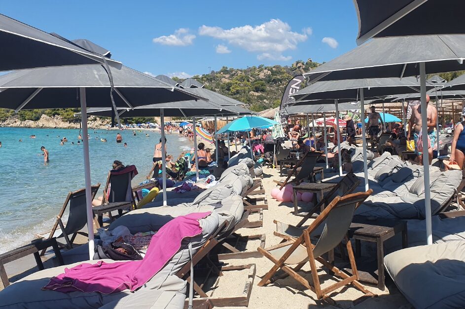 Όλο αυτό φτάνει έως εκεί που σκάει το κύμα, με το νερό να βρέχει τις ξαπλώστρες-σπιτάκια στην πρώτη σειρά.