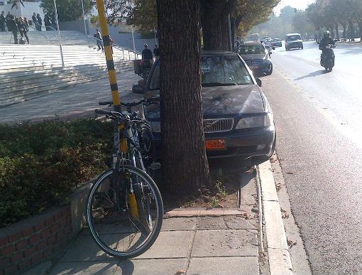 Χτες, λοιπόν, καθώς οδηγούσα προς τη δουλειά έβαλα τον αυτόματο πιλότο της «καθημερινότητας». Αυτόν που βάζουμε όταν έχουμε συνηθίσει μια διαδρομή τόσο πολύ που δεν καταλαβαίνουμε πως φτάνουμε στον προορισμό. Οδηγώντας πέρασα έξω από το Βελλίδειο κι εκεί έσπασε το αυγουλάκι έκπληξη, μόνο που η έκπληξη ήταν από αυτές που τις βλέπεις, στραβώνεις τη μούρη και θες να φας δεύτερο μήπως σπάσει η γκίνια. Η έκπληξη ήταν δύο κλούβες της αστυνομίας παρατημένες πάνω στο πεζοδρόμιο οι οποίες αν δεν εμπόδιζαν την πρόσβαση στους πεζούς, τουλάχιστον τους δυσκόλευαν την ήδη δύσκολη «καθημερινότητα». Σαν να μην έφτανε αυτό, στον ποδηλατόδρομο μπροστά ακριβώς από το Βελλίδειο υπήρχαν παρκαρισμένα καμιά δεκαπενταριά αυτοκίνητα με πορτοκαλί πινακίδες. Αν οι κρατικές υπηρεσίες είχαν χιούμορ στις πινακίδες αντί για αριθμό θα μπορούσαν να γράφουν «ΑΡΧΟΝΤΑΣ» μαζί με τα εισαγωγικά… Θα χαρακτήριζαν καλύτερα τον επιβαίνοντα. Ήθελα να βγάλω φωτογραφία αλλά θα διακινδύνευα να χτυπήσω κάποιον ποδηλάτη από αυτούς που πετάγονταν σαν μπάλες σε φλιπεράκι προσπαθώντας να τ’ αποφύγουν ένα- ένα.
