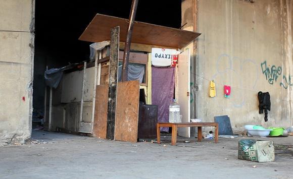 Χαμογελάει για τη φωτογραφία και μετά χαμηλώνει το βλέμμα και μπαίνει μέσα στο παράπηγμα που έφτιαξε πρόχειρα, με υλικά που βρίσκει στο καθημερινό του δρομολόγιο στα στενά και τους δρόμους της πόλης. Είναι νέος και φαίνεται να είναι από τους καινούργιους στη «γειτονιά» των ρακοσυλλεκτών που έχει στηθεί μέσα στις εγκαταλελειμμένες αποθήκες της παλιάς Αγροτικής Τράπεζας στη Νέα Δυτική Είσοδο της Θεσσαλονίκης.