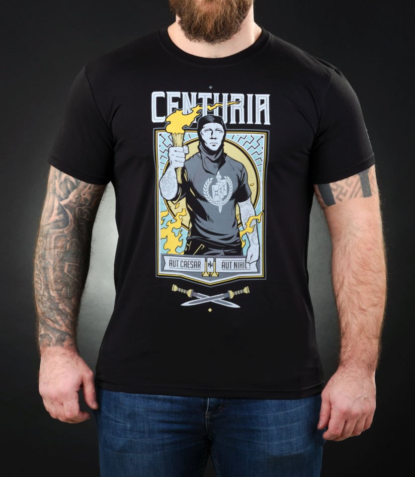 Όπως αναδεικνύει ο Michael Colborne στο βιβλίο του From the Fires of War: Ukraine’s Azov Movement and the Global Far Right, σε μια δημοσίευσή της στα κοινωνικά δίκτυα, η ομάδα Centuria δείχνει ένα μέλος της να προπονείται στην χρήση όπλων, ενώ επάνω στο όπλο του φαίνεται το ναζιστικό σύμβολο Black Sun, το όνομα του νεοναζί τρομοκράτη David Lane και η ημερομηνία 15/03/2019, όταν και έγινε η τρομοκρατική επίθεση στο Christchurch, που στοίχισε τη ζωή σε 51 άτομα.