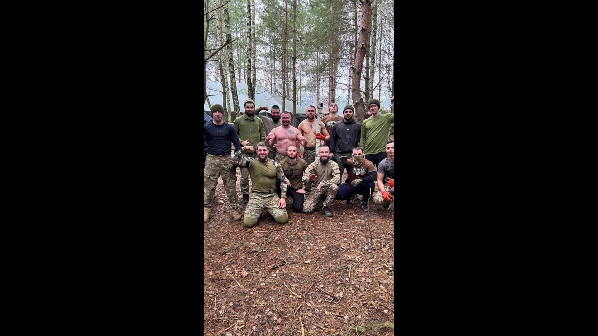 Στο μπράτσο του ενός διακρίνεται το σήμα της ομάδας Centuria. Πηγή: Telegram.Σε ένα άλλο κανάλι του Telegram που ανήκει σε μέλος του 98ου Τάγματος Dnipro-Azov ανέβηκε βίντεο που δείχνει στρατιώτες του να γυμνάζονται δίπλα από μια σημαία της Centuria, ενώ φαίνεται και μια ομαδική φωτογραφία, στην οποία δύο άτομα χαιρετούν ναζιστικά.