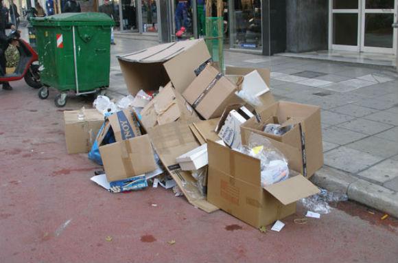 Αφού ησύχασα που οι γλάστρες είναι πλέον σε καλά χέρια, προχώρησα πιο κάτω. Και τι είδα; Ένα βουνό από χαρτόκουτα και άλλα σκουπίδια πεταμένα πάνω στο οδόστρωμα. Αυτοί που δε τα χρειάζονταν πλέον, τα παράτησαν εκεί στην ακρίτσα. Έτσι, τα χαρτόκουτα έχουν θέα, βλέπουν τον καταγάλανο ουρανό και ανταλλάζουν και καμιά κουβέντα με τους περαστικούς. Γιατί μέσα στον μπλε κάδο όλα αυτά δε θα μπορούσαν να συμβούν. Τα χαρτόκουτα και οι φίλοι τους θα ήταν κλεισμένα, θα ψυχοπλακώνονταν και ποιος τους θα τους έτρεχε στους ψυχιάτρους; Έτσι, όπως διαπίστωσα, ο μπλε κάδος ήταν σχεδόν άδειος και δίπλα του φυλούσε τσίλιες ένα χαρτοκουτάκι μην τυχόν πάει κάποιος και φυλακίσει τους φίλους του μέσα στον κάδο.