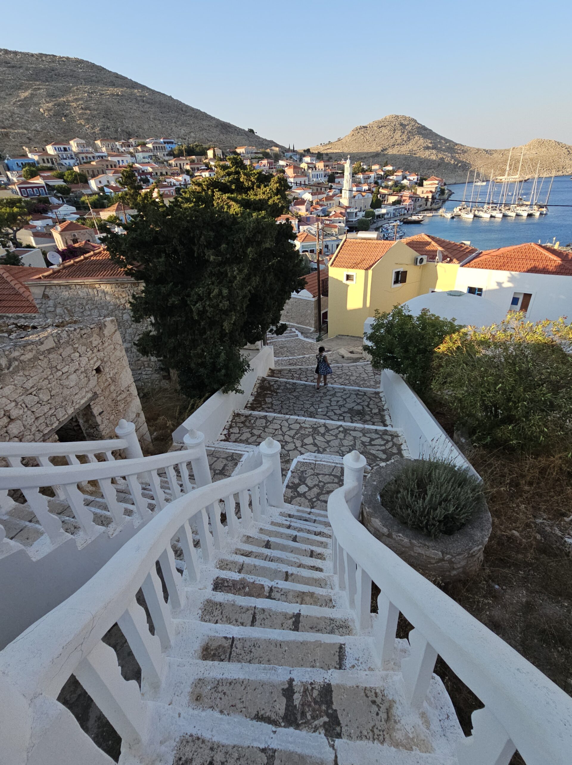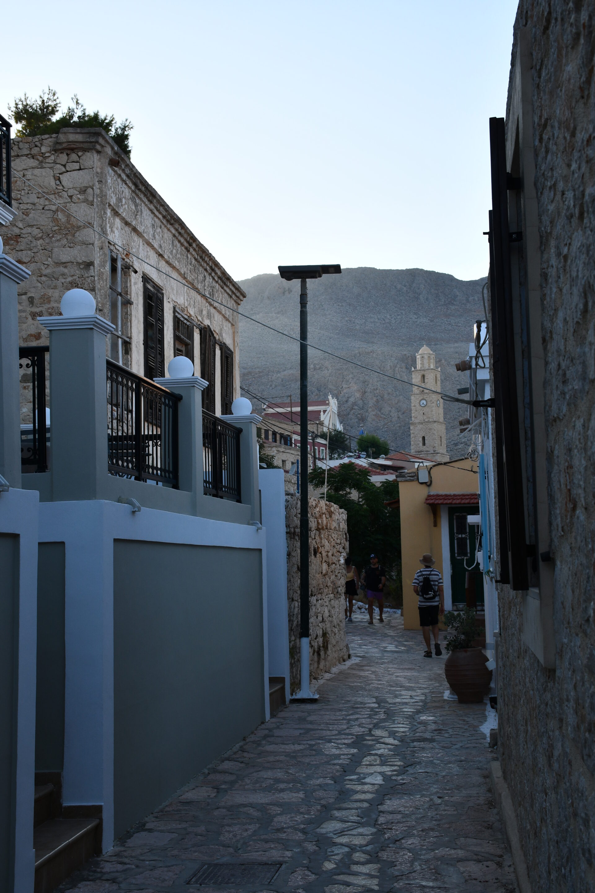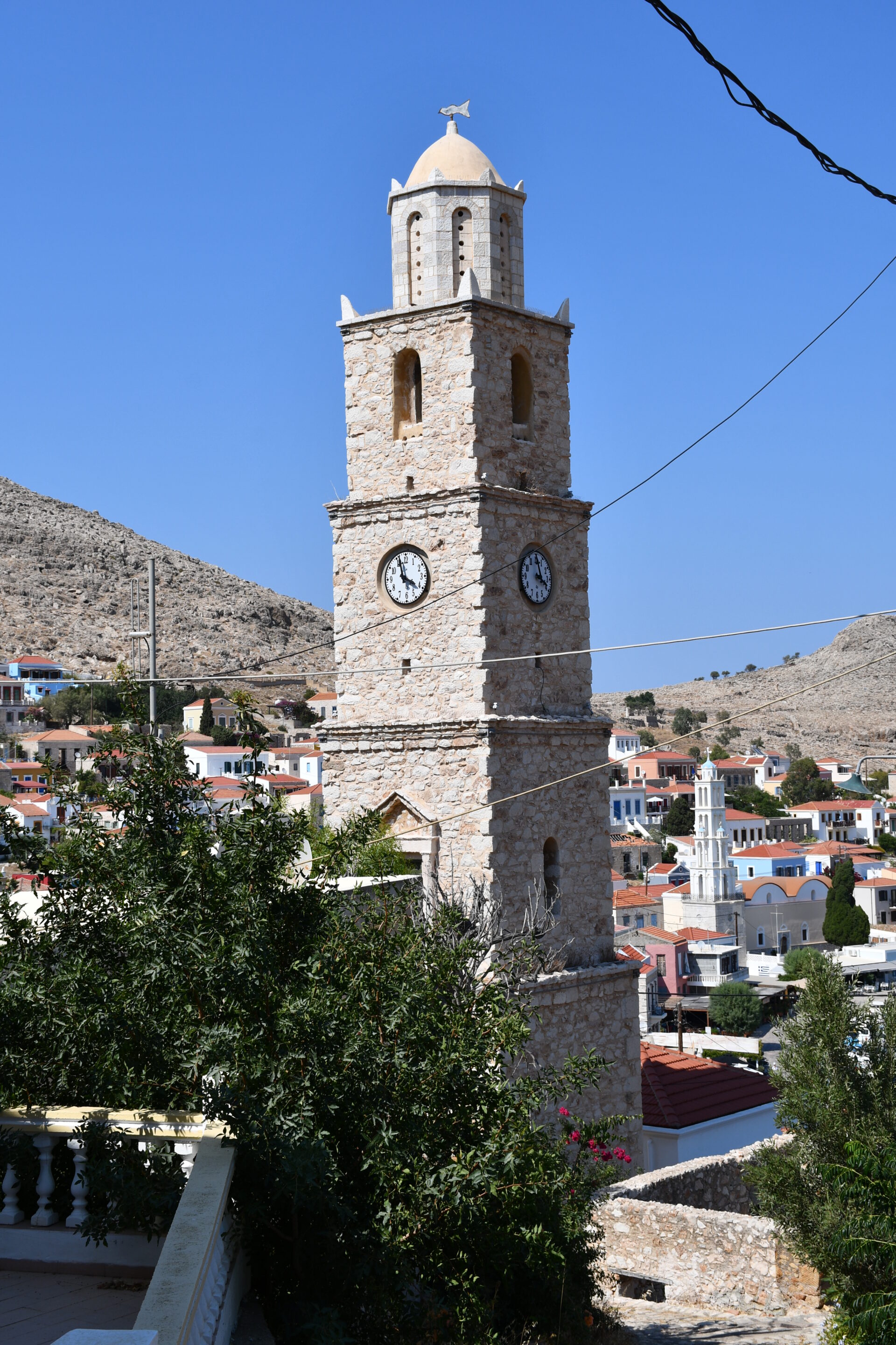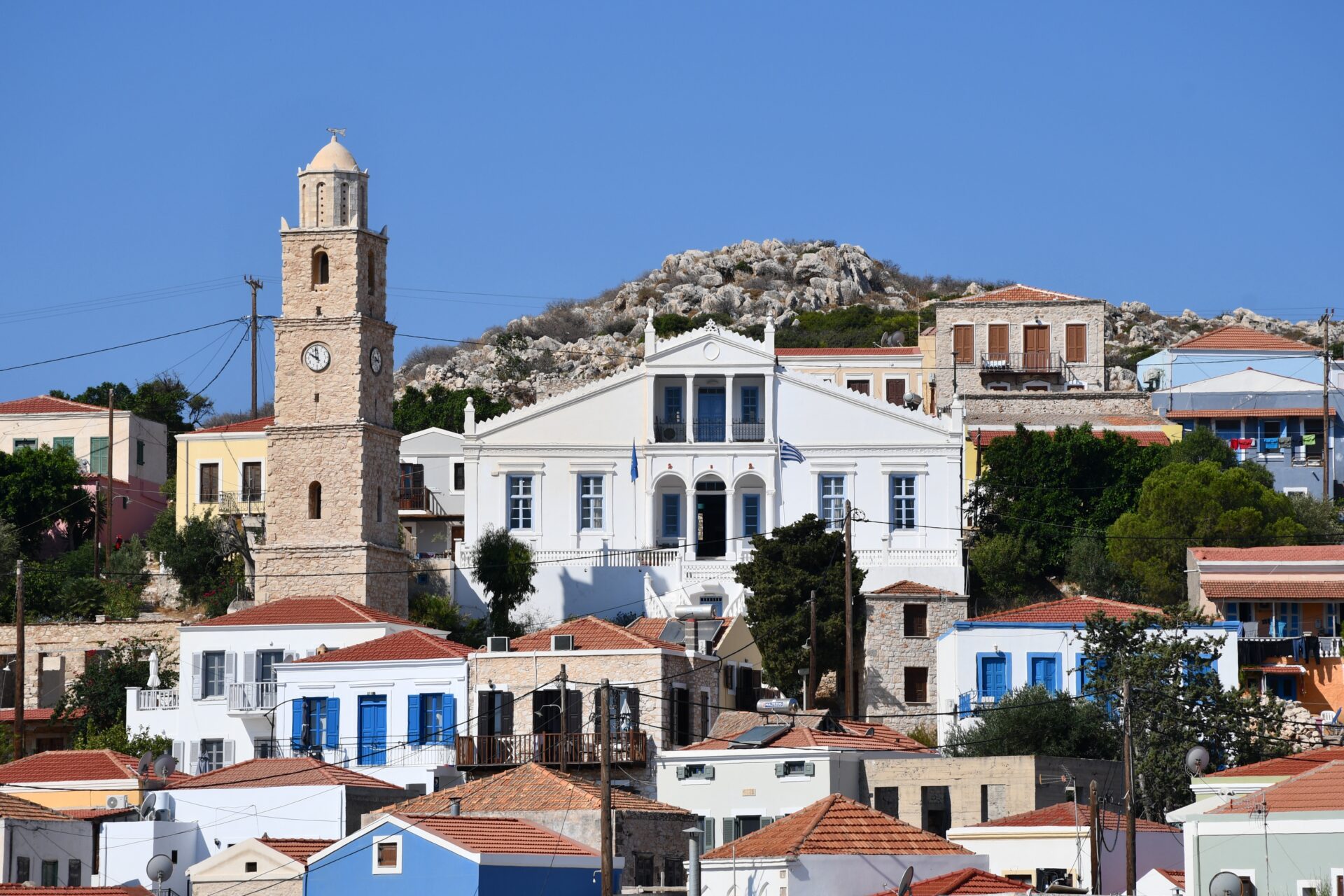 Ανάμεσα στα χρωματιστά αρχοντικά ξεχωρίζουν, ο Πύργος του Ρολογιού πλάι στο νεοκλασικό κτήριο του Δημαρχείου (19ος αι.) και το μεγαλοπρεπές καμπαναριό της εκκλησίας του Αγίου Νικολάου, το ψηλότερο της Δωδεκανήσου.