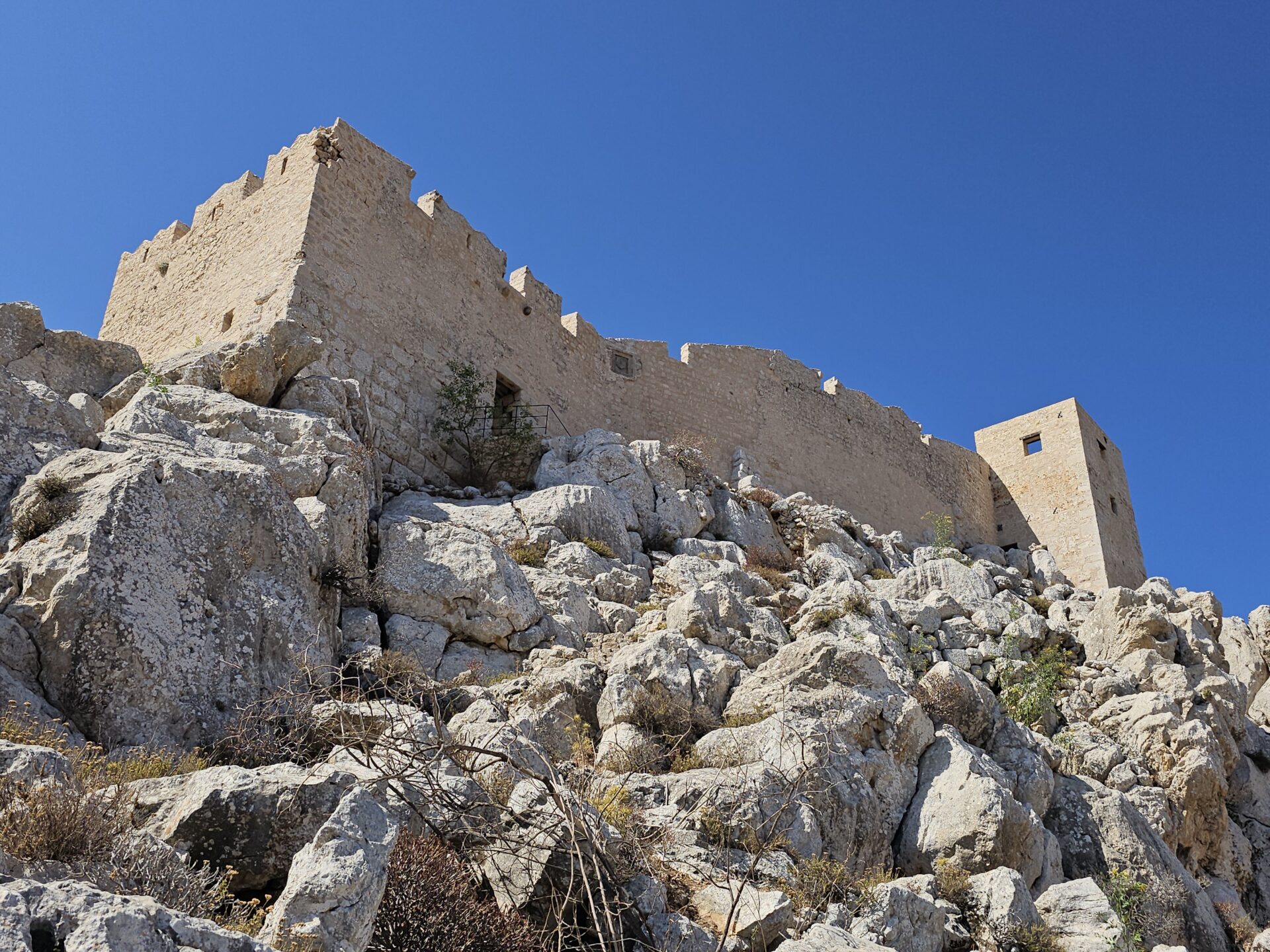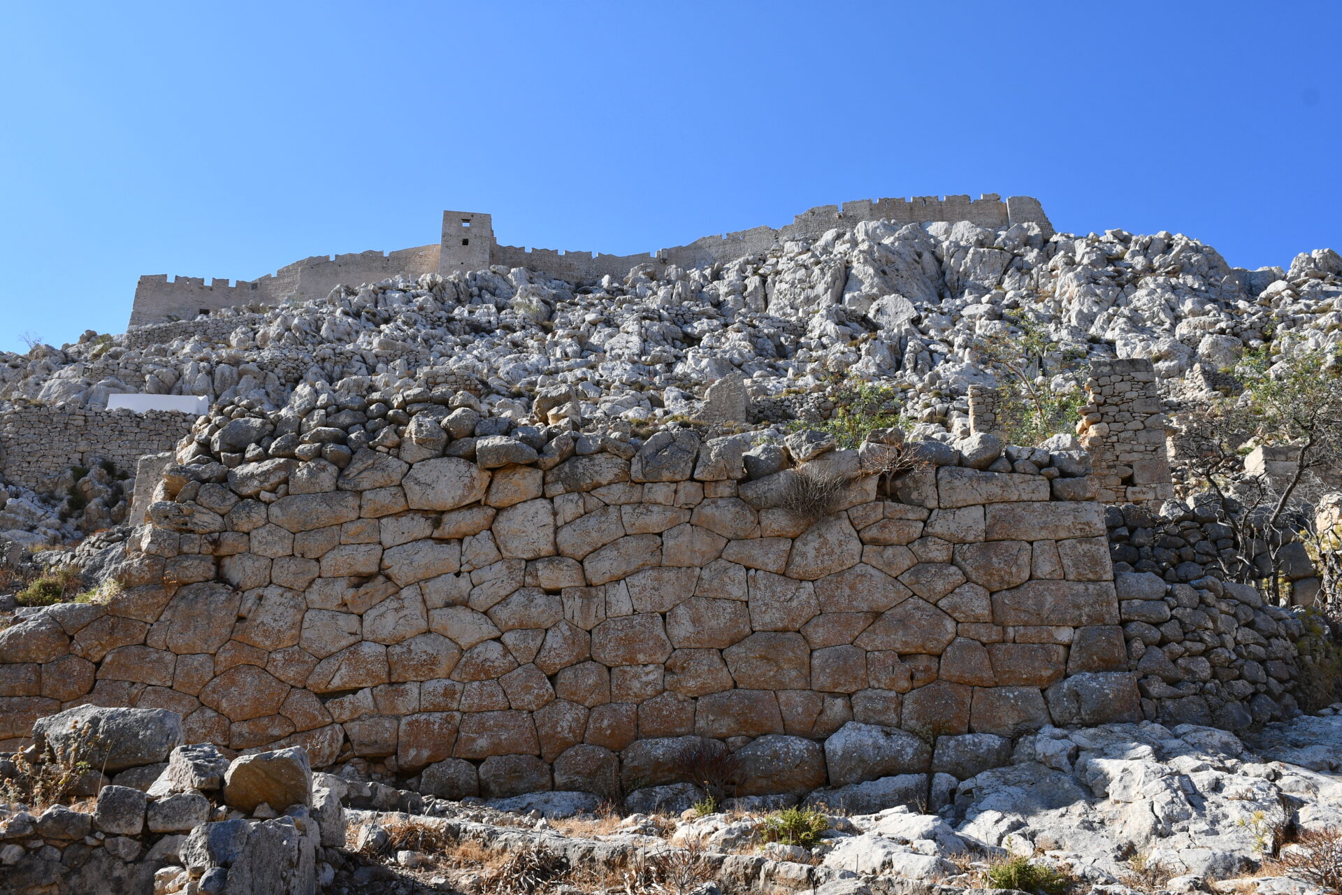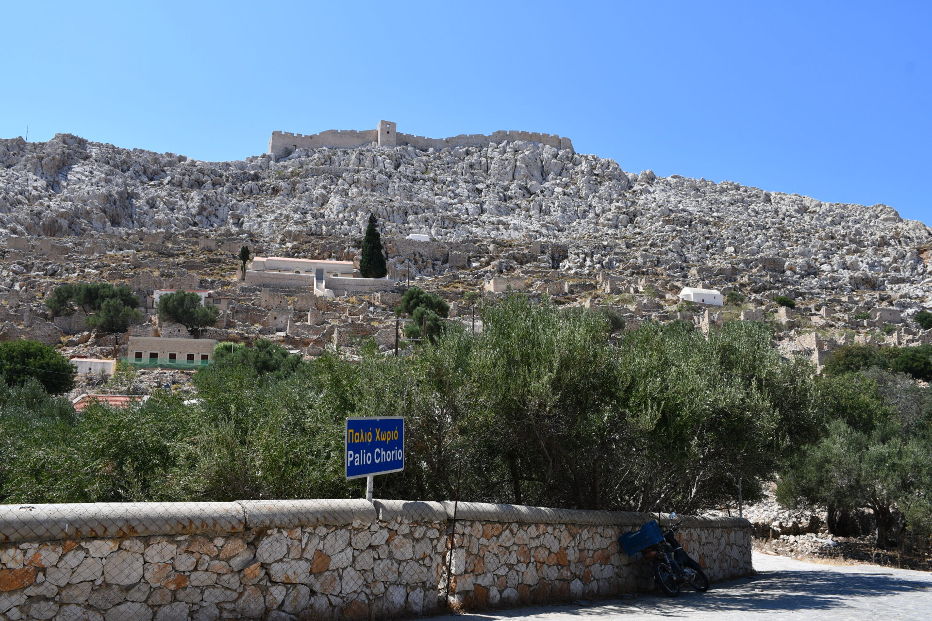 Το εντυπωσιακότερο όμως όλων, είναι το κάστρο των Ιπποτών που δεσπόζει στην κορυφή του λόφου, γνωστού ως Παλαιόκαστρο ή Άη Νικόλας, πάνω από το Παλιό Χωριό. Κατασκευάστηκε σε δύο οικοδομικές φάσεις, μια παλαιότερη πιθανόν ελληνιστικής περιόδου και μια δεύτερη από τους Ιωαννίτες Ιππότες της Ρόδου τον 15ο αιώνα όταν κατέλαβαν το νησί.