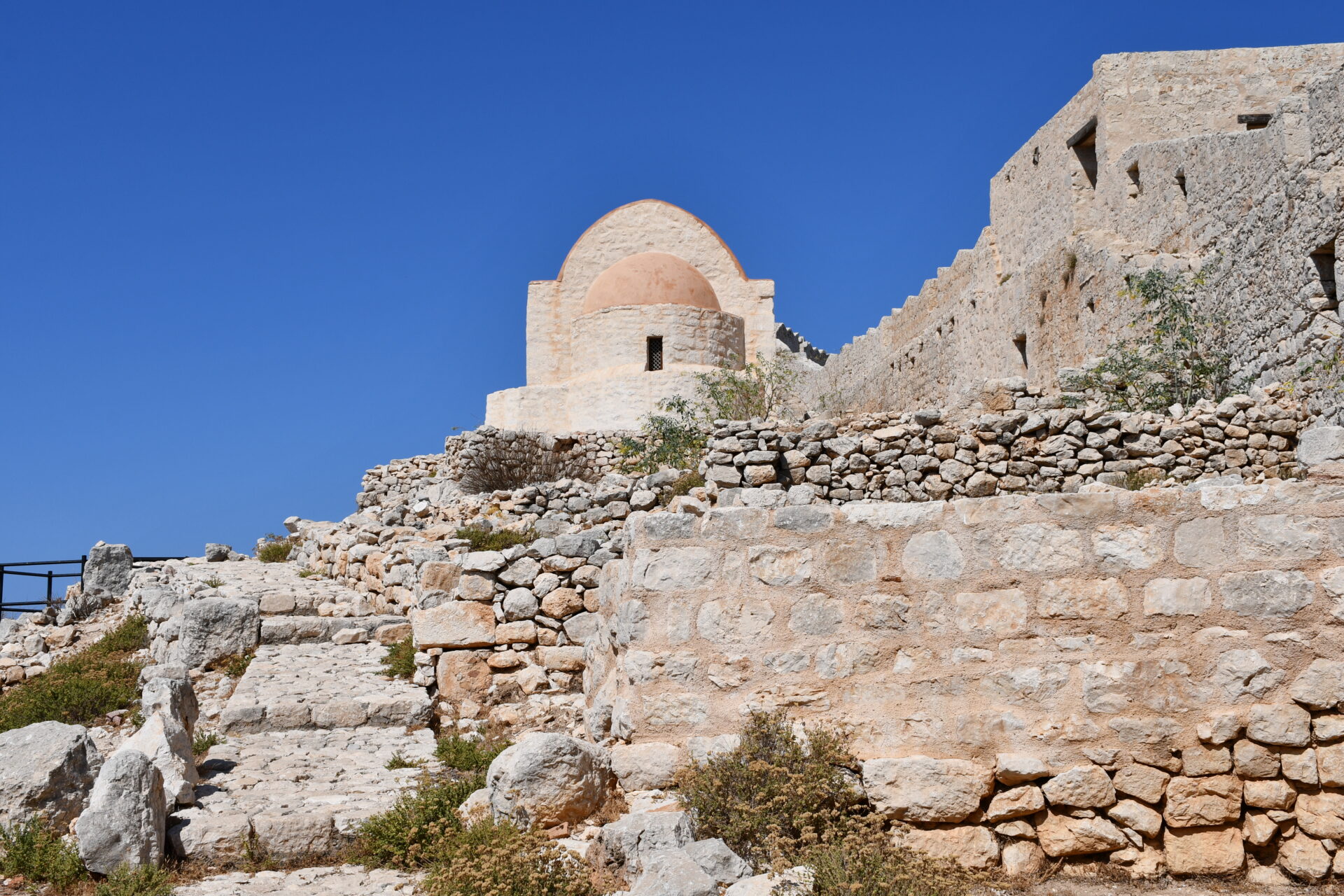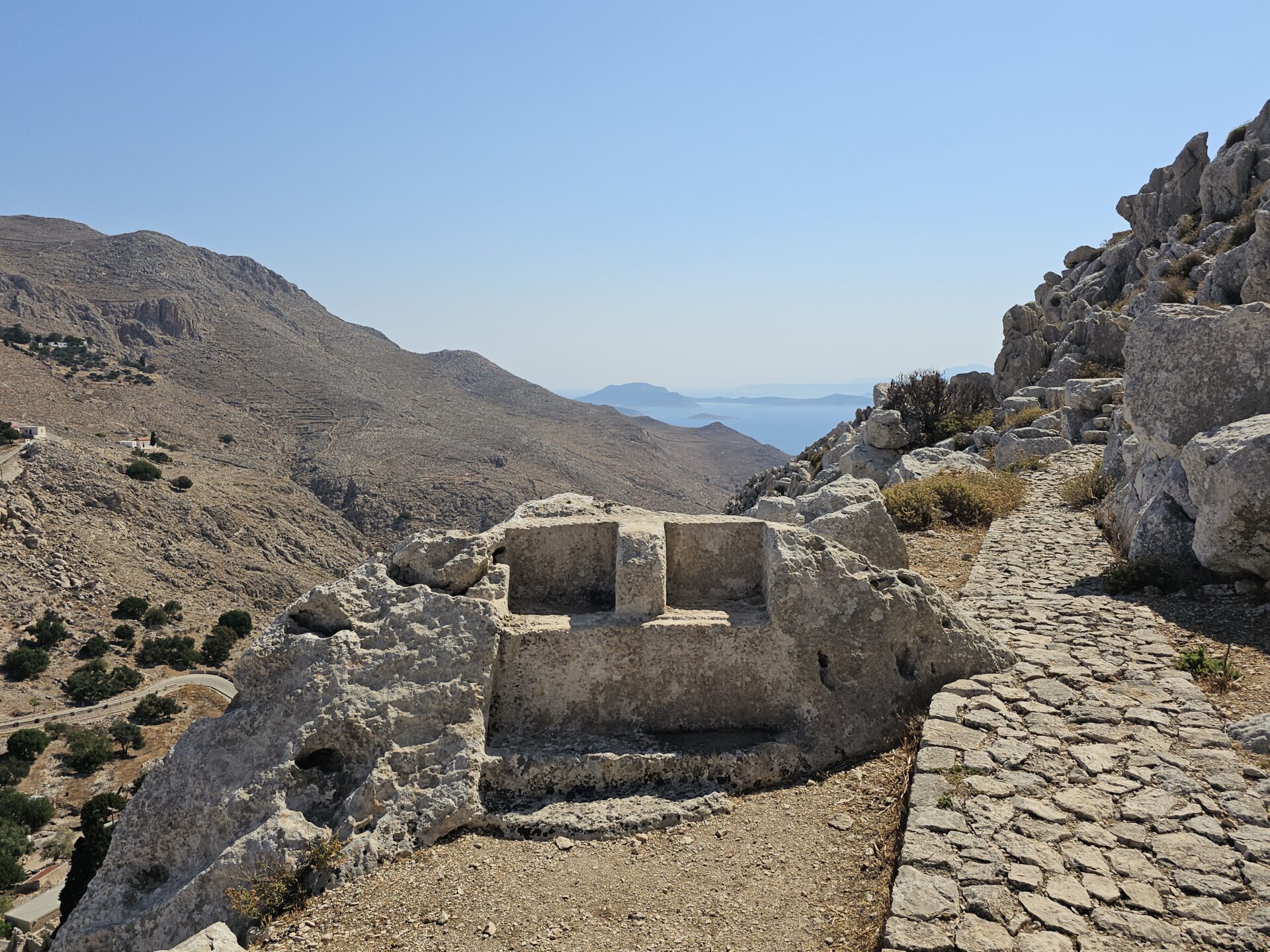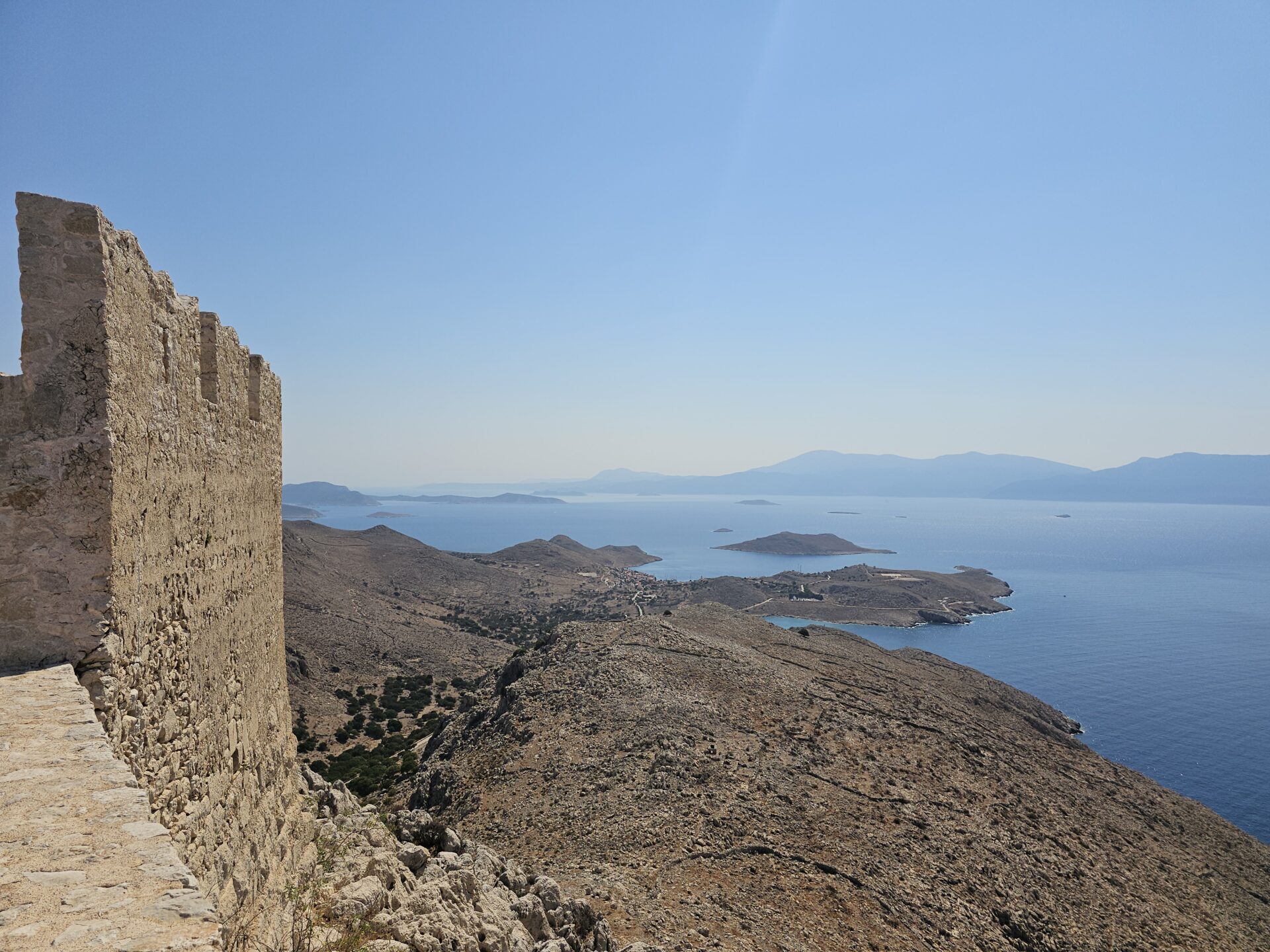 Το εντυπωσιακότερο όμως όλων, είναι το κάστρο των Ιπποτών που δεσπόζει στην κορυφή του λόφου, γνωστού ως Παλαιόκαστρο ή Άη Νικόλας, πάνω από το Παλιό Χωριό. Κατασκευάστηκε σε δύο οικοδομικές φάσεις, μια παλαιότερη πιθανόν ελληνιστικής περιόδου και μια δεύτερη από τους Ιωαννίτες Ιππότες της Ρόδου τον 15ο αιώνα όταν κατέλαβαν το νησί.