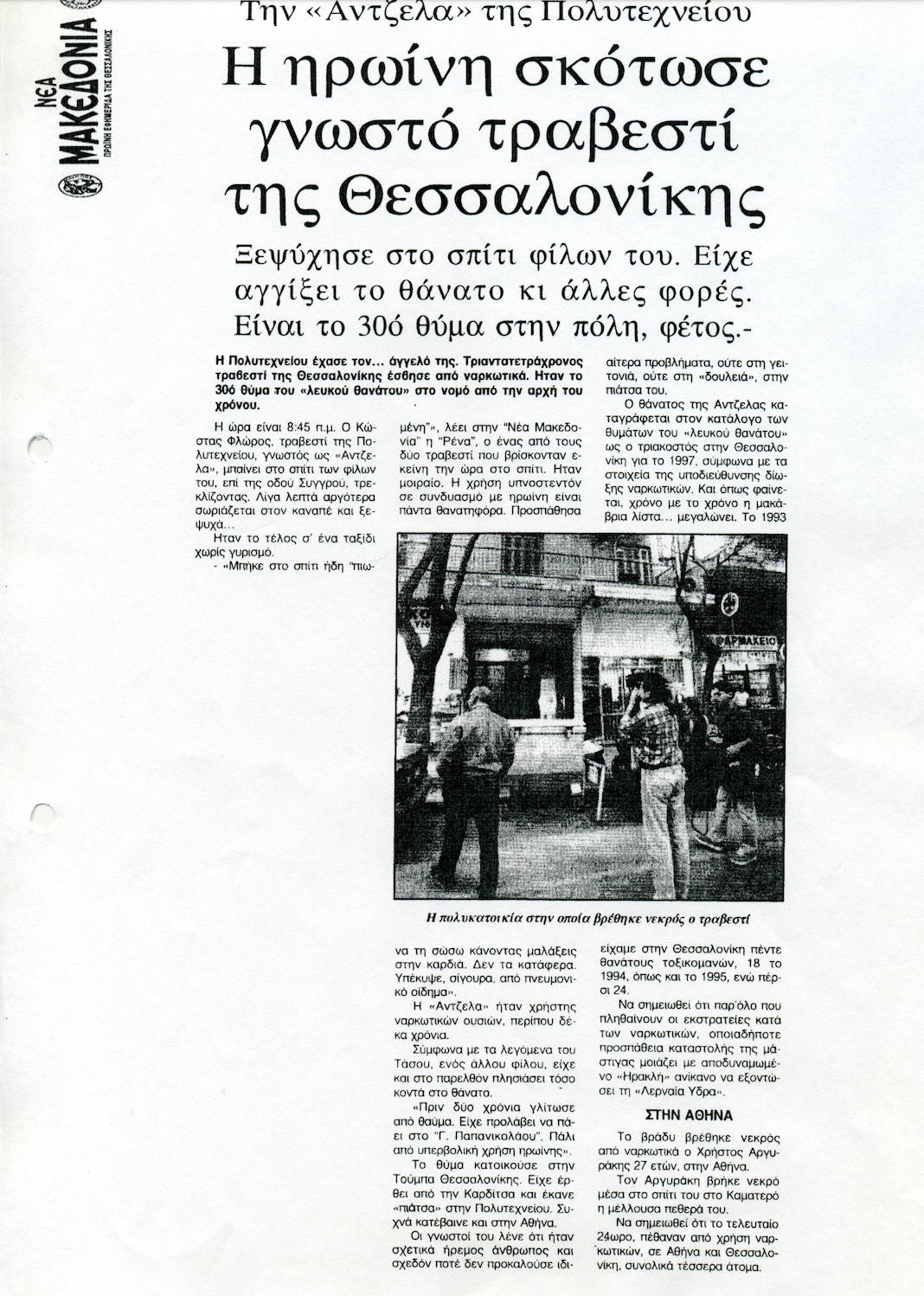 Παραφίνη στο στήθος που πάγωνε και μέχρι το βράδυ χρειαζόσουν σουτιέν, κάψιμο της τρίχας με ηλεκτρισμό και λέιζερ, σιλικόνες στη μούρη που πέτρωναν και παραμόρφωναν μύτες και μάγουλα, οποιαδήποτε πρακτική μπορούσε να σε κάνει έστω πρόσκαιρα να μοιάζεις με γυναίκα ήταν αποδεκτή. Και το μοιάζεις ήταν κάτι που οι ίδιες αποδέχονταν ως συνθήκη. Δεν πίστευαν ότι είναι γυναίκες αλλά κάτι περισσότερο από αυτό, ήταν τα απόλυτα θηλυκά που έκαναν ότι μπορούσαν για να συναγωνιστούν τις μούντζες και να προσελκύσουν τα τσόλια που της έβλεπαν ως κάτι το εξωτικό. Οι τρανς ήταν η ψυχή της παρέας, μιλούσαν για τις ερωτικές τους εμπειρίες (διαποτίζοντας τες με την απαραίτητη υπερβολή), δημιουργούσαν ένα μύθο γύρω από το όνομα τους, ήταν αστείες, προκαλούσαν, ήταν εντυπωσιακές, ζούσαν με πάθος, δίχως αύριο και κυρίως ήταν αυτές που διαμόρφωσαν μια νέα ερωτική κουλτούρα εκπαιδεύοντας χιλιάδες νεαρά αγόρια στο πως πρέπει να κάνουνε έρωτα με τα κορίτσια τους και δεκάδες γυναίκες που κατέφευγαν σε αυτές για συμβουλές στο τι είναι αυτό που αρέσει στους άντρες στο κρεβάτι. Αποτέλεσαν με αυτό το τρόπο εν αγνοία τους μέρος της γυναικείας χειραφέτησης και της απενοχοποίησης τους σεξ μιας κοινωνίας που ακόμα ζούσε κάτω από τα στεγανά της ηθικής μιας ξεπερασμένης εποχής.