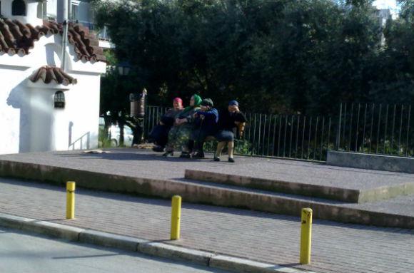 Οι ηλικιωμένες στην Παναγία Φανερωμένη τις Κυριακές συζητούν την καθημερινότητά τους με ανοιχτή ή κλειστή την αγορά. Εικόνα: Σωτήρης Κοϊκόπουλος