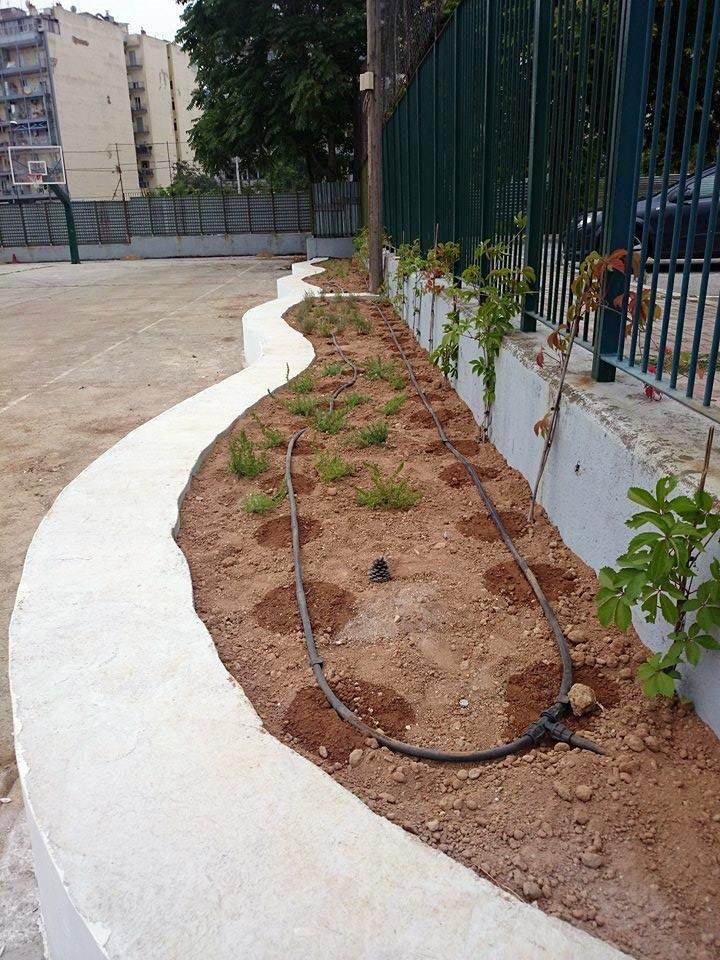 Η μεταμόρφωση της αυλής του σχολείου προχώρησε εντυπωσιακά στη διάρκεια του τελευταίου μήνα. Τα νέα παρτέρια που δημιουργήσαμε εξαρχής, τα καθιστικά σώματα, η πέργκολα και κυρίως οι φυτεύσεις των δέντρων που θα αλλάξουν την περίφραξη αλλά και τη σκίαση της αυλής του σχολείου, δημιουργώντας μια φυσική προστασία από τον αφιλόξενο περιβάλλοντα χώρο των αστικών, των ταίνων και των έργων του Μετρό που περικυκλώνουν την αυλή του σχολείου.