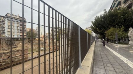 Η έφορος αρχαιοτήτων της Θεσσαλονίκης αποφάσισε ότι το ανάκτορο του Γαλερίου στην πλατεία Ναυαρίνου χρειάζεται προστασία, και ότι ο καλύτερος τρόπος για να προστατεύσει το μνημείο είναι να του βάλει κάγκελα.